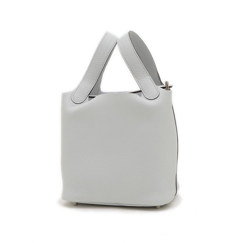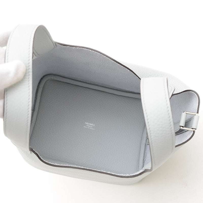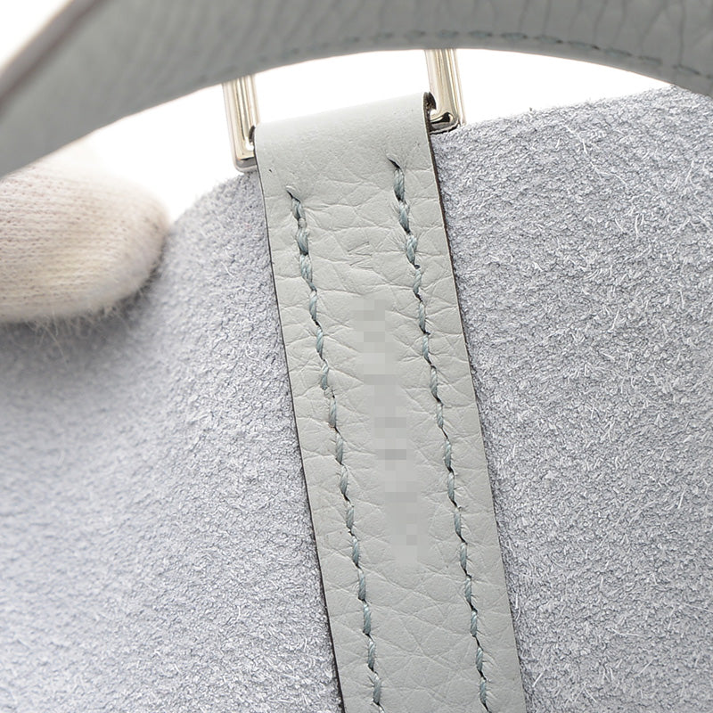 ピコタンロック PM 18 トリヨン ブルーペール シルバー金具 W刻印 ハンドバッグ