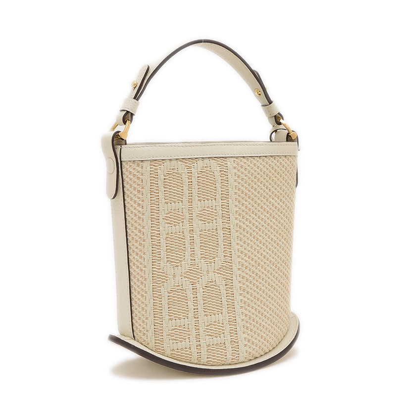 パン ミニ バケット ハンドバッグ イリュージョンジャガード ホワイト/ナチュラル ハンドバッグ