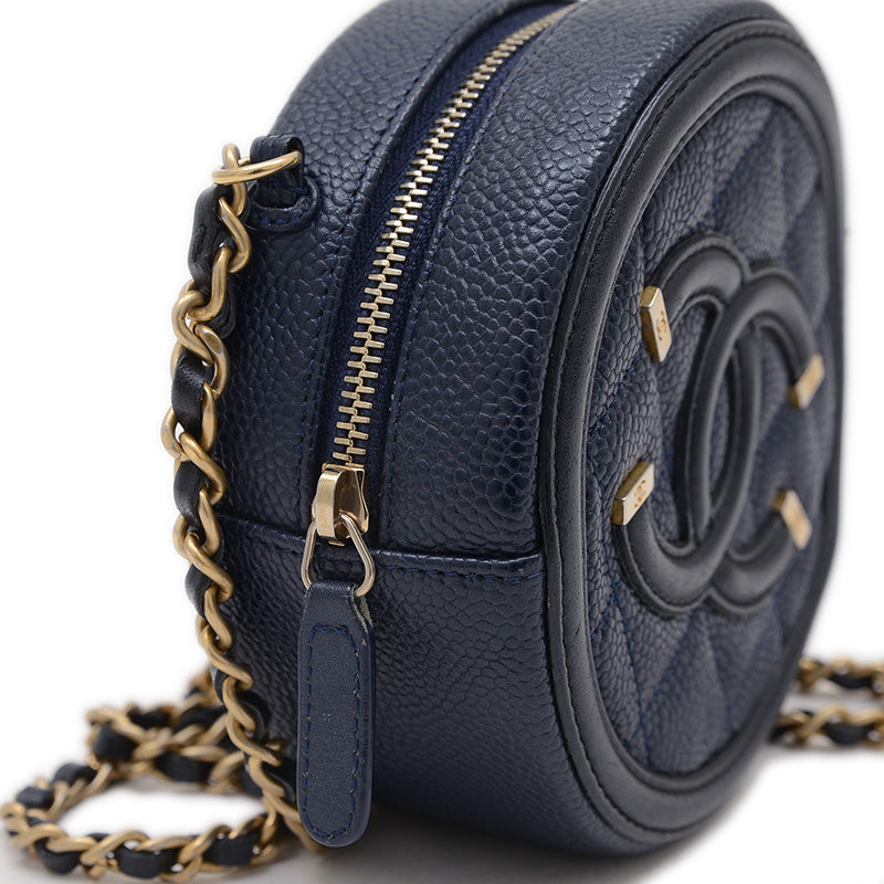 CCフィリグリー ラウンド チェーンショルダー キャビア ネイビー AP0365 ショルダーバッグ