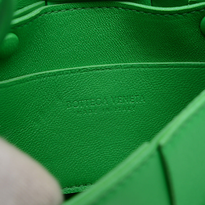 マイクロサイズのショルダーバッグです。特徴は、ボッテガのアイコンであるイントレチャート(編み込み)を太めにアレンジした「マキシイントレチャート」と、ミニマルでコロンとしたスクエアフォルム。アクセサリー感覚で使える可愛らしいサイズ感が魅力です。