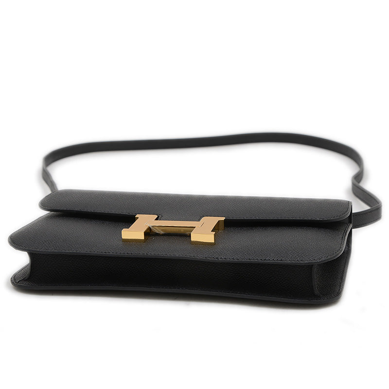 - アイコニックなHクラスプが特徴の横長フォルムのショルダーバッグです。傷に強く型崩れしにくいヴォー・エプソン素材のシックなブラックカラーに、上品なゴールド金具が組み合わされ、洗練されたラグジュアリー感を演出します。コンパクトながらも収納力があり、どんな装いも上品に格上げする、エルメスを代表するエレガントな逸品です。