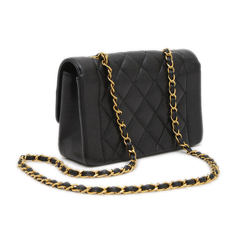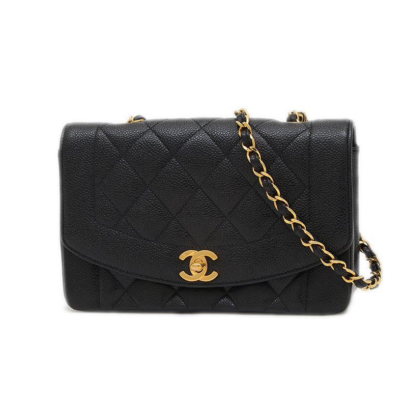 ダイアナ チェーンショルダー 22cm キャビアスキン ブラック A01164 ヴィンテージ ショルダーバッグ