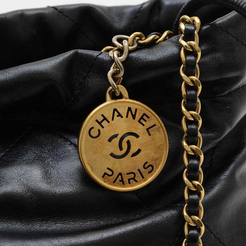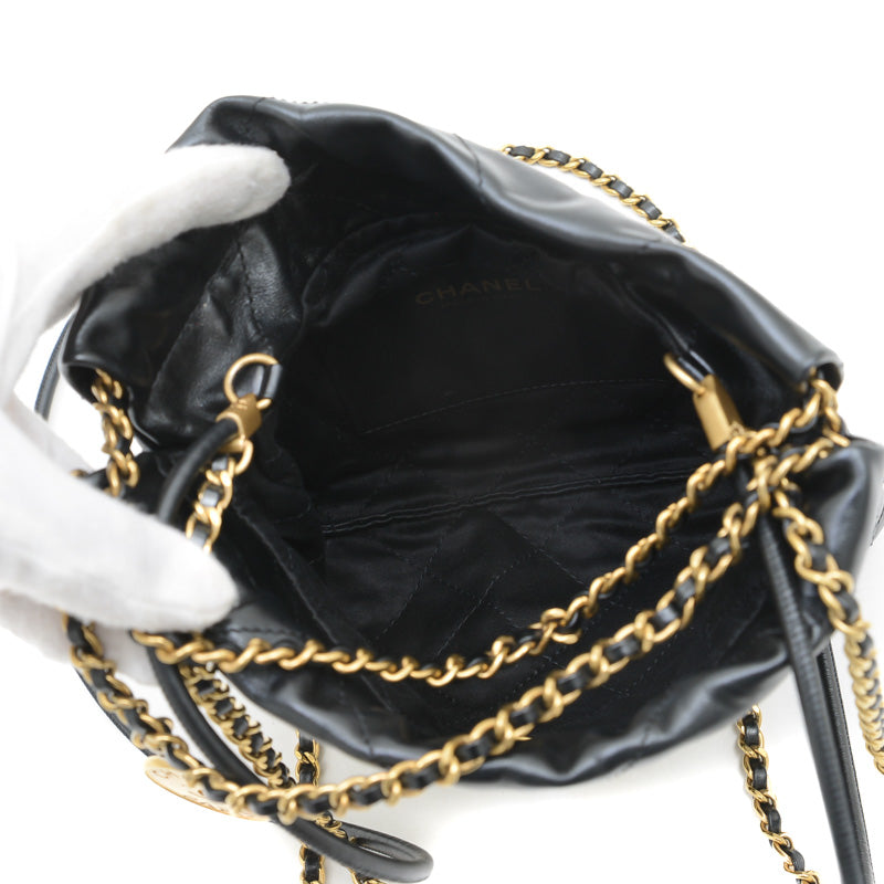 シャネル22 ショルダーバッグ ブラック シャイニーカーフレザー AS3980 ショルダーバッグ