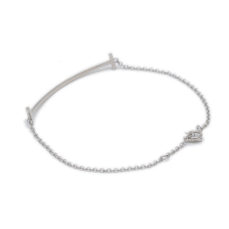 - その名の通り、微笑んでいるような「T」のカーブが特徴的なブレスレットです。純粋な輝きを放つ18Kホワイトゴールドに、繊細なダイヤモンドがセッティングされており、手首に上品な輝きと洗練された印象を添えます。ミニマルながらも存在感があり、日常使いから特別な日まで、どんなスタイルにもモダンな魅力をプラスする人気のジュエリーです。