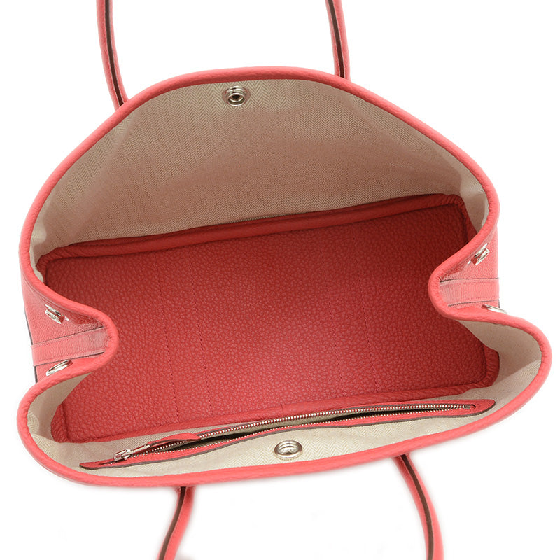 しなやかで傷に強いネゴンダ素材(雌仔牛の革)を使用した、鮮やかなブーゲンビリアカラーが特徴のトートバッグです。コンパクトながらも日常使いに最適なサイズ感で、必要最低限の荷物を収納できます。持つだけで装いに華やかさを添える美しい色合いと、シンプルながらも洗練されたデザインが魅力の、タイムレスに愛される逸品です。