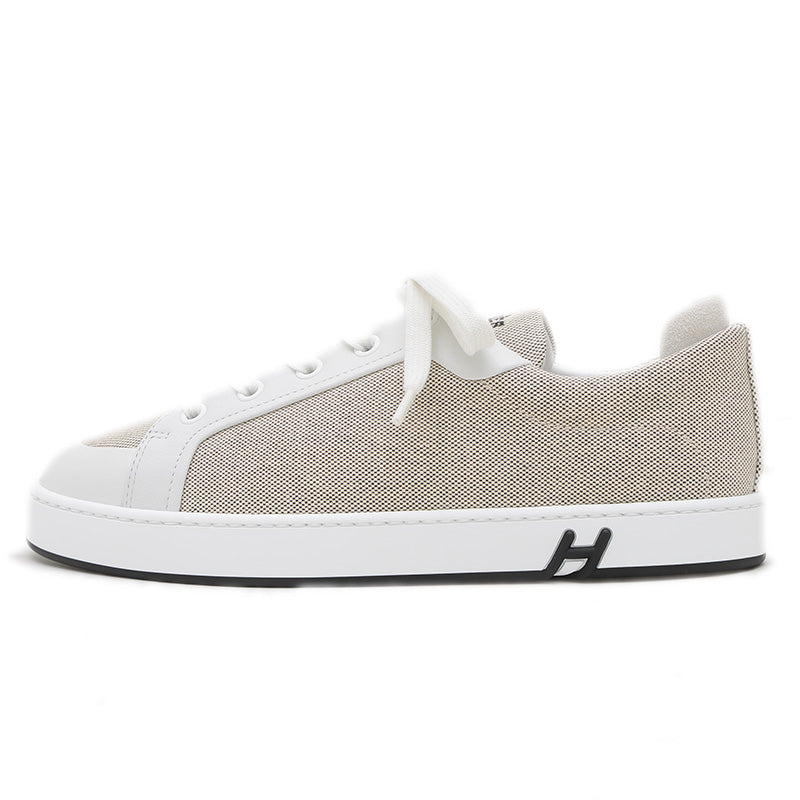 - トワルHとカーフスキンの異素材を組み合わせた、軽快かつ上品なスニーカーです。サイドにあしらわれた「H」のパーフォレーションがさりげないアクセントとなり、洗練された大人のカジュアルスタイルを演出します。