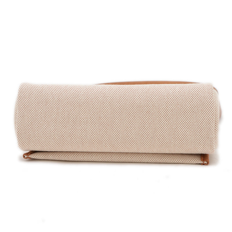 ケリーバッグから着想を得た上品なフォルムと、丈夫なトワル素材のナチュラルなエクリュ(生成り)と、フォーブ(ブラウン)レザーの組み合わせが特徴のミニハンドバッグです。クールなシルバー金具がモダンなアクセントとなり、コンパクトながらも日常の必需品をスマートに収納できます。取り外し可能なショルダーストラップ付きで、ハンドバッグとしてもクロスボディとしても楽しめる、機能性とエレガンスを兼ね備えた人気のアイテムです。