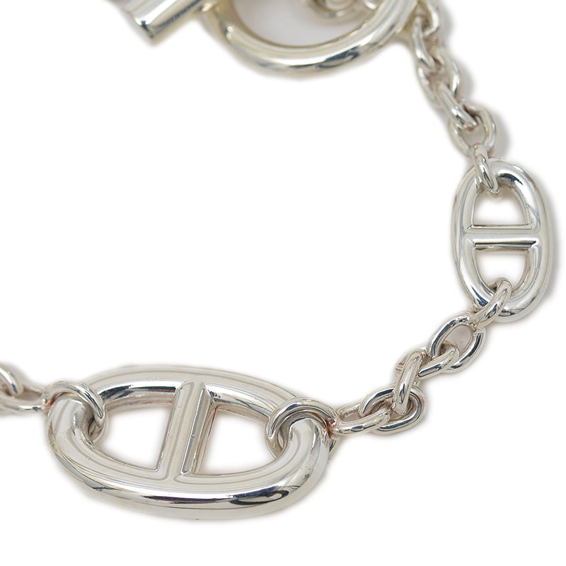 ブランドを象徴する錨の鎖「シェーヌダンクル」モチーフが連なる、繊細で軽やかなデザインが特徴です。手首に沿うしなやかなつけ心地と、動くたびに光を反射するシルバーの輝きが、上品で洗練されたスタイルを演出する人気のジュエリーです。