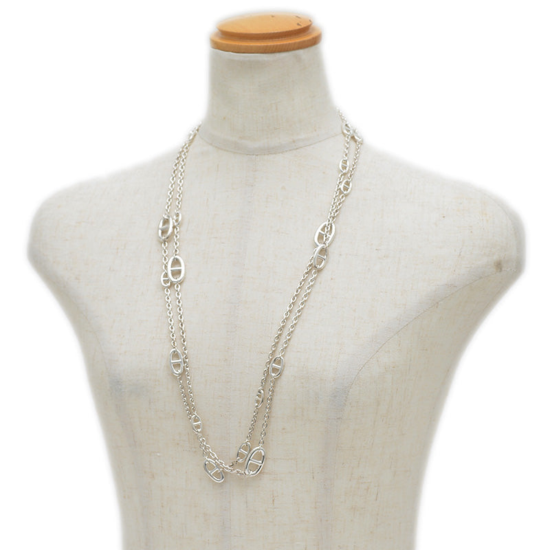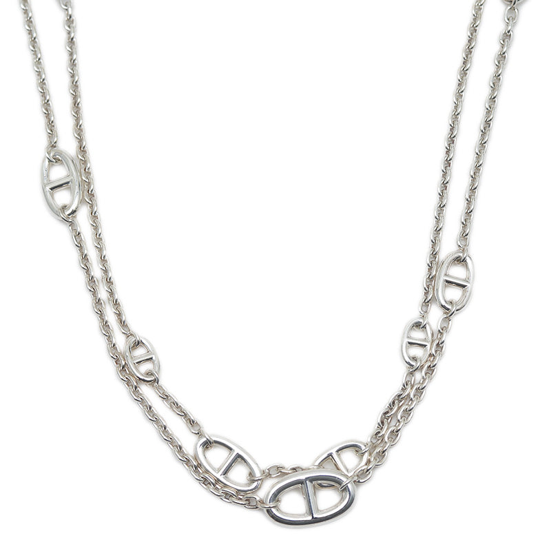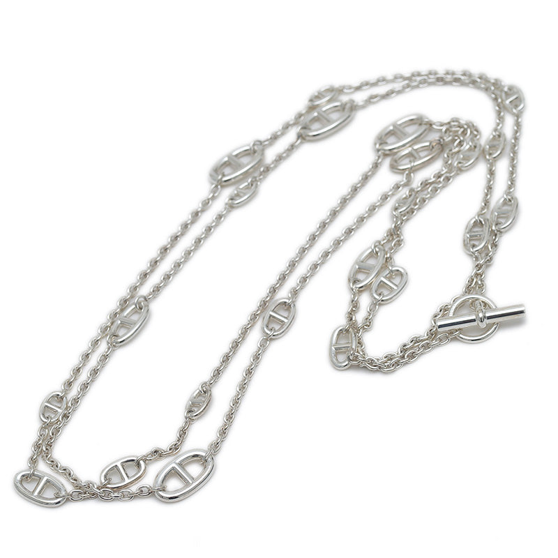 ブランドを象徴する錨の鎖「シェーヌダンクル」モチーフが連なるデザインが特徴のロングネックレスです。上質なシルバー925素材が織りなす繊細な輝きと、160cmという長さは、一連でシンプルに、または二重、三重に巻いてボリュームを持たせたりと、様々なアレンジを楽しめます。日常の装いに洗練されたエレガンスと存在感を添える、タイムレスな魅力を持つ逸品です。