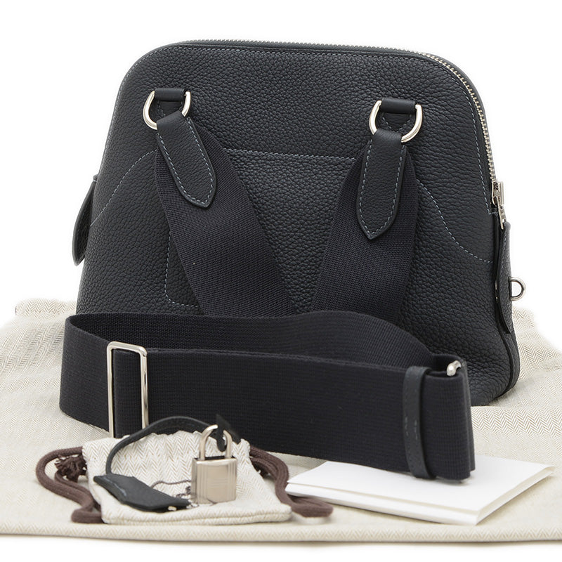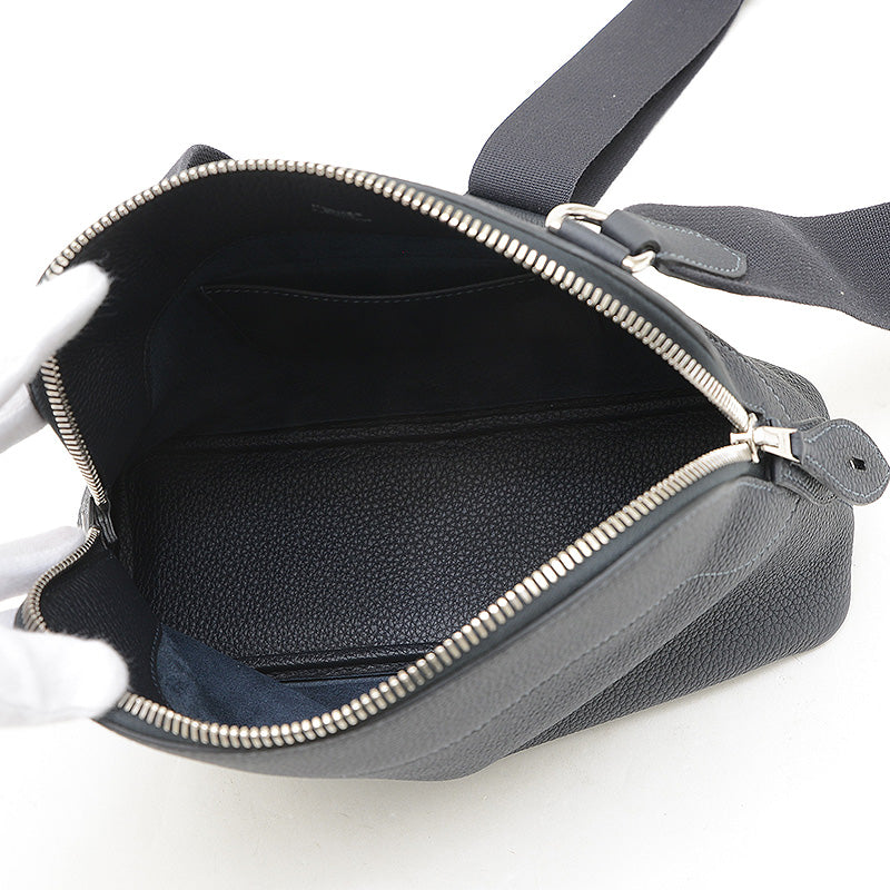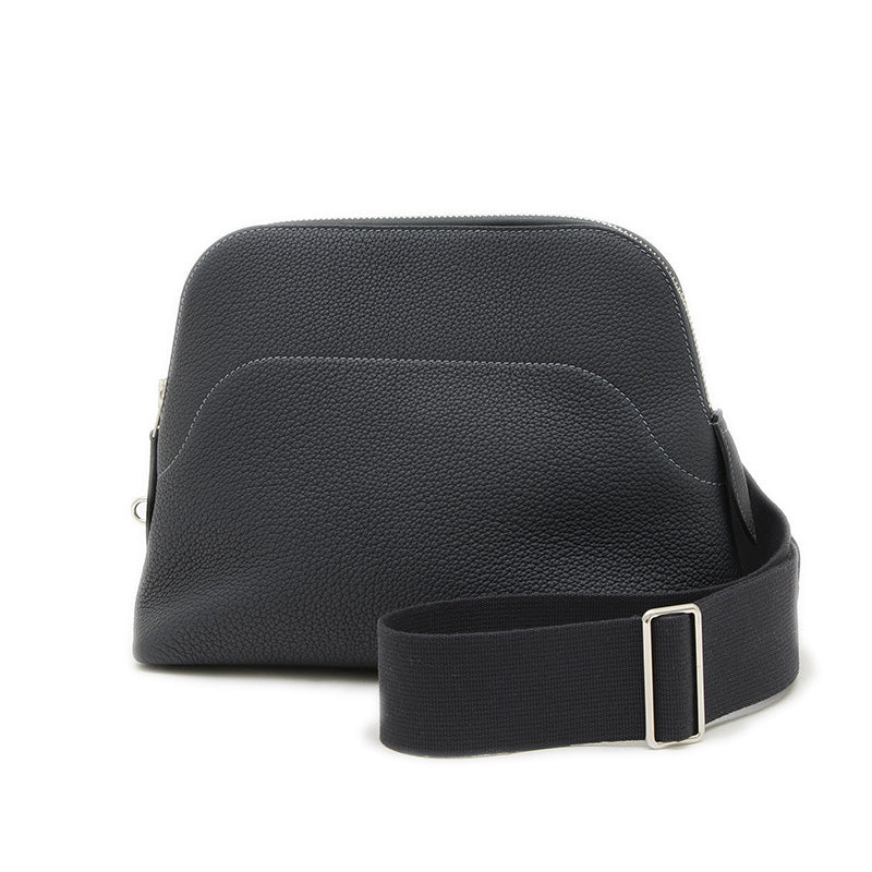 メッセンジャーバッグとして使えるようにデザインされたボリードです。しなやかで人気の高いトゴ素材のシックなブラックカラーに、クールなシルバー金具が洗練された印象を与えます。カジュアルなスタイルにも合わせやすいショルダーストラップが付属しており、機能性とボリードならではのエレガントなフォルムが融合した逸品です。