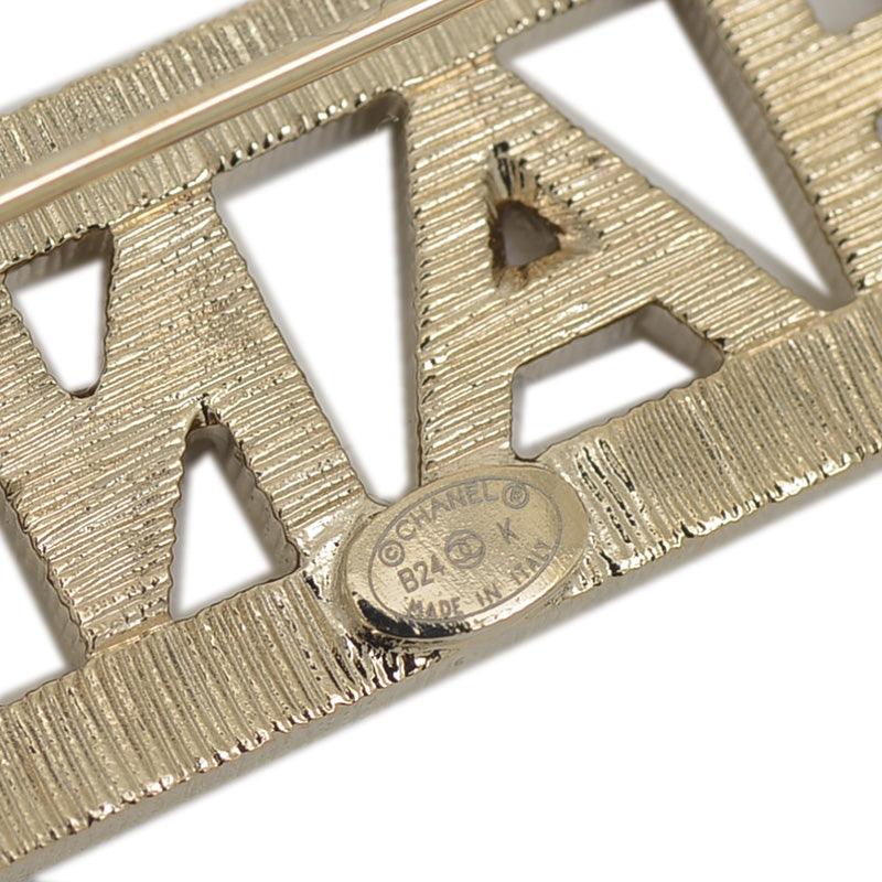 ブローチ スクエアロゴ ラインストーン B24K ブローチ