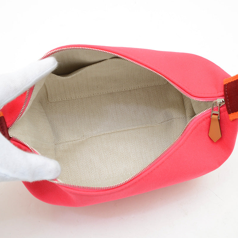 - エルメスが2020年春夏に発表したポーチ型バッグで、コ軽量で耐久性に優れています。サイズは約21×17×12cmで、バッグインバッグやトラベルポーチとして最適です。フロントの「H」刺繍と太めのストラップが特徴で、スナップボタンで形状を調整可能です。