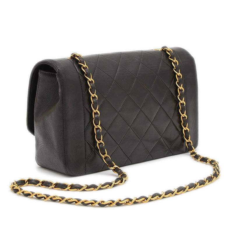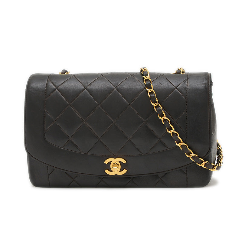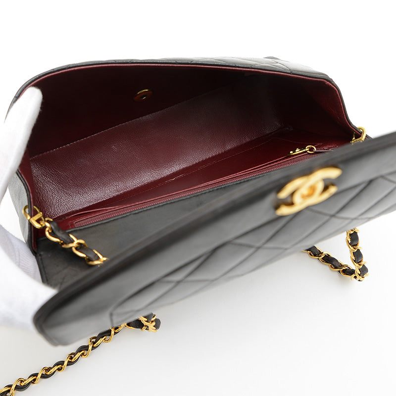 ダイアナ シングルチェーンショルダー ラムスキン ブラック ゴールド金具 A01165 ショルダーバッグ