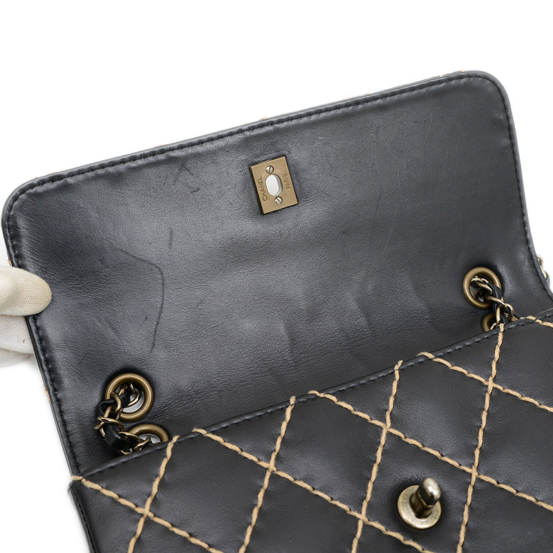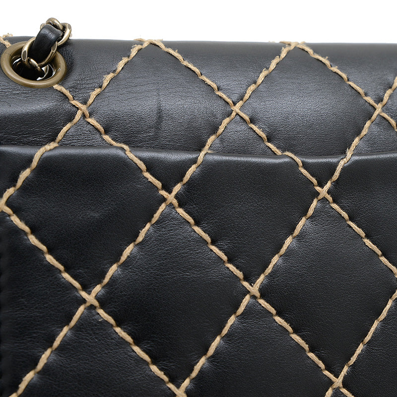 - その名の通り、通常のキルティングとは異なる大胆なワイルドステッチが特徴的なショルダーバッグです。上質なブラックレザーに、クールなシルバー金具とココマークの留め具がエレガントなアクセントになっています。カジュアルな印象ながらもシャネルらしい洗練されたデザインで、日常使いから特別な日まで幅広いスタイルにマッチします。