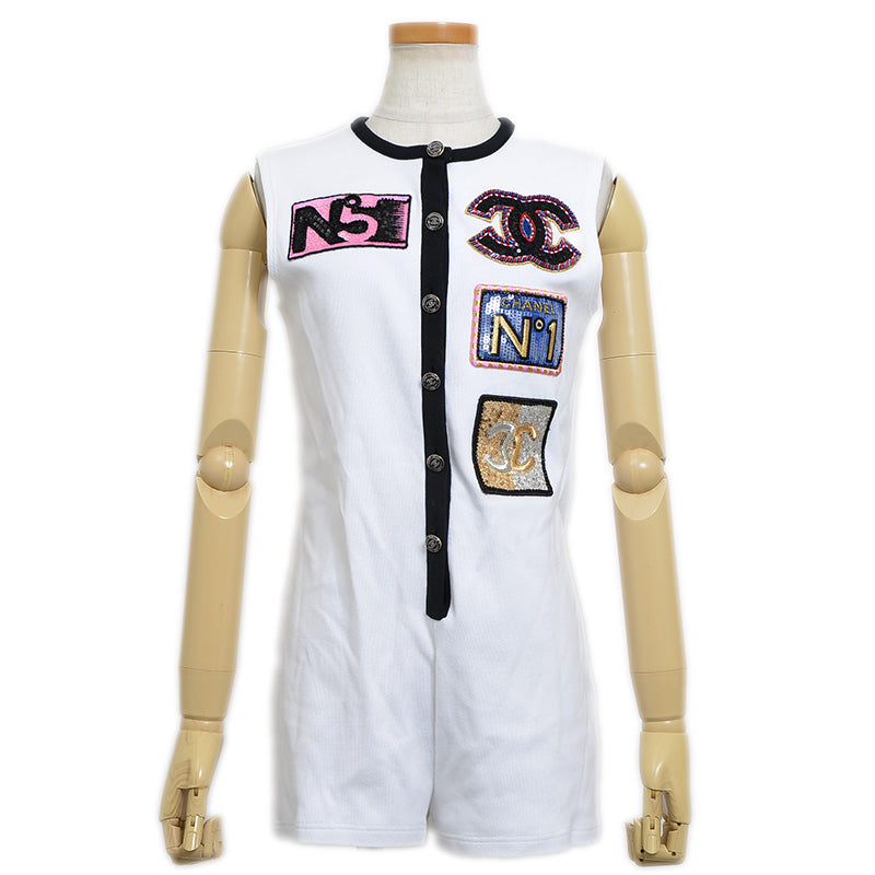 ジャンプスーツ エンブロイダリー コットン ホワイト/マルチカラー #36 ツナギ