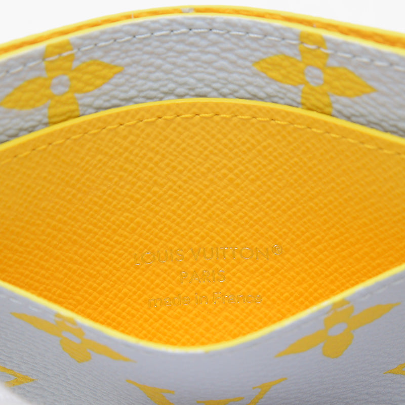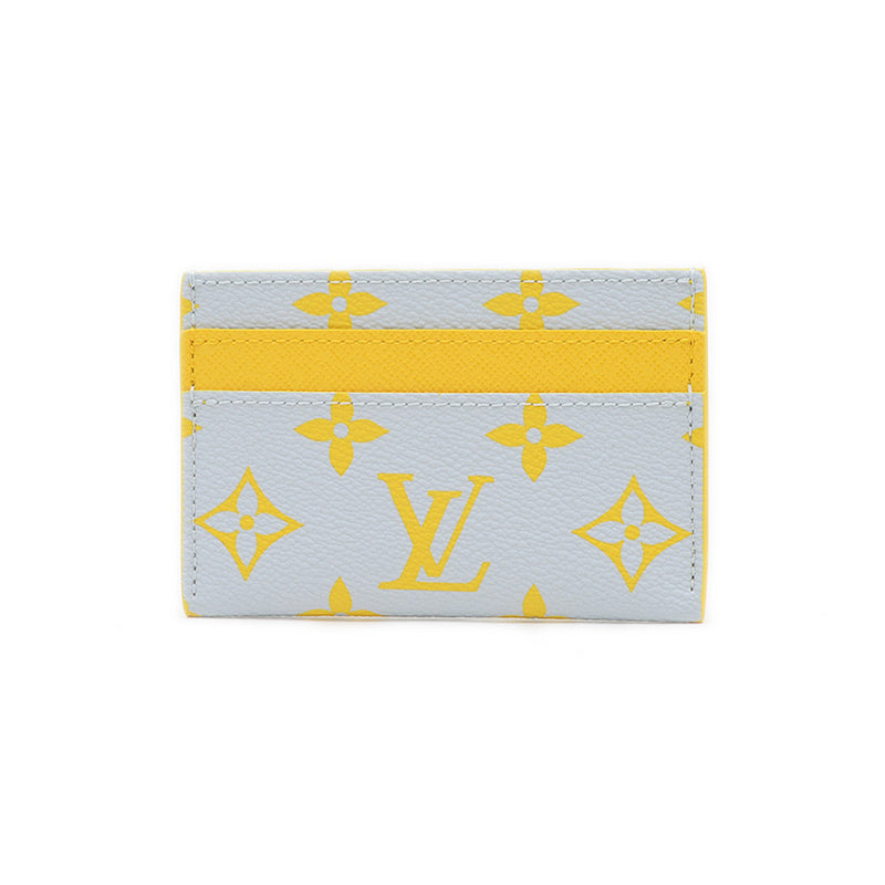 モノグラム・キャンバスとイエローのレザーを組み合わせた、エレガントで機能的なデザインが魅力です。コンパクトながら、複数のカードスロットと中央のポケットを備え、日常使いに最適なアイテムです。