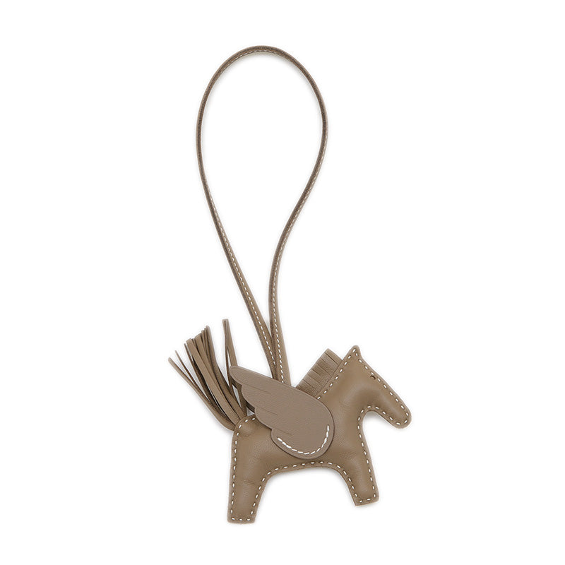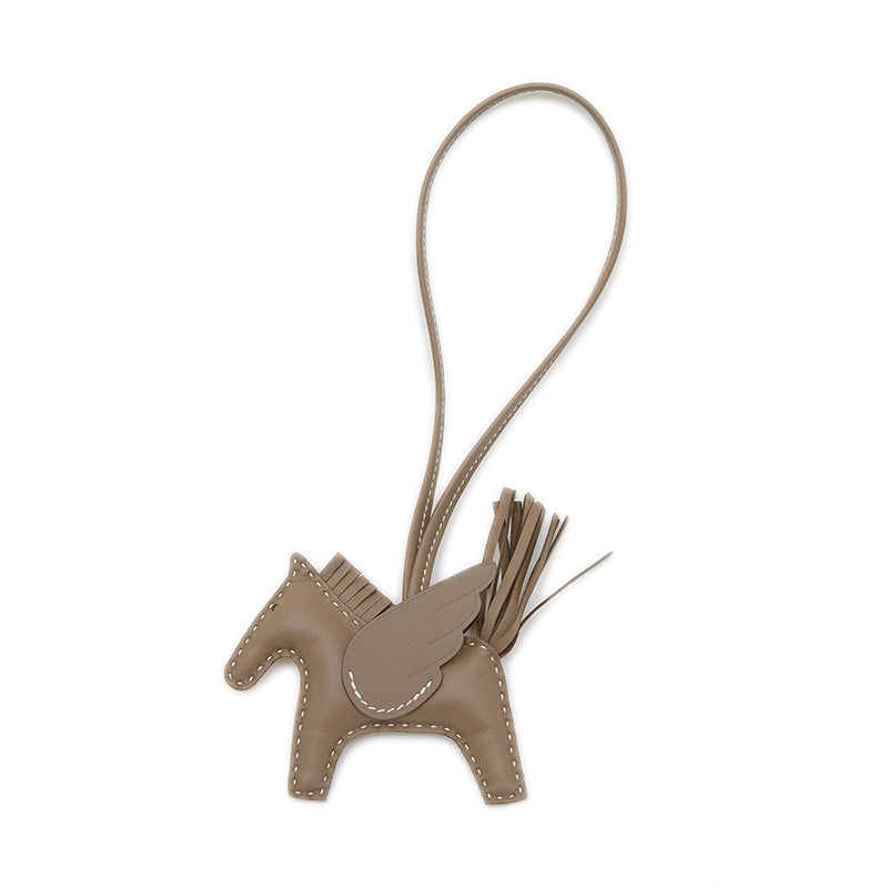 - メゾンを象徴する馬モチーフのロデオチャームに、翼が生えたデザインが特徴です。しなやかなアニューミロ(ラムスキン)素材の落ち着いたエトゥープ(グレーベージュ)カラーが、シンプルながらも上品で洗練された印象を与えます。一つとして同じものがない、手仕事の温かみが感じられる特別な逸品で、バッグにさりげなく高級感と遊び心を添える人気のアイテムです。