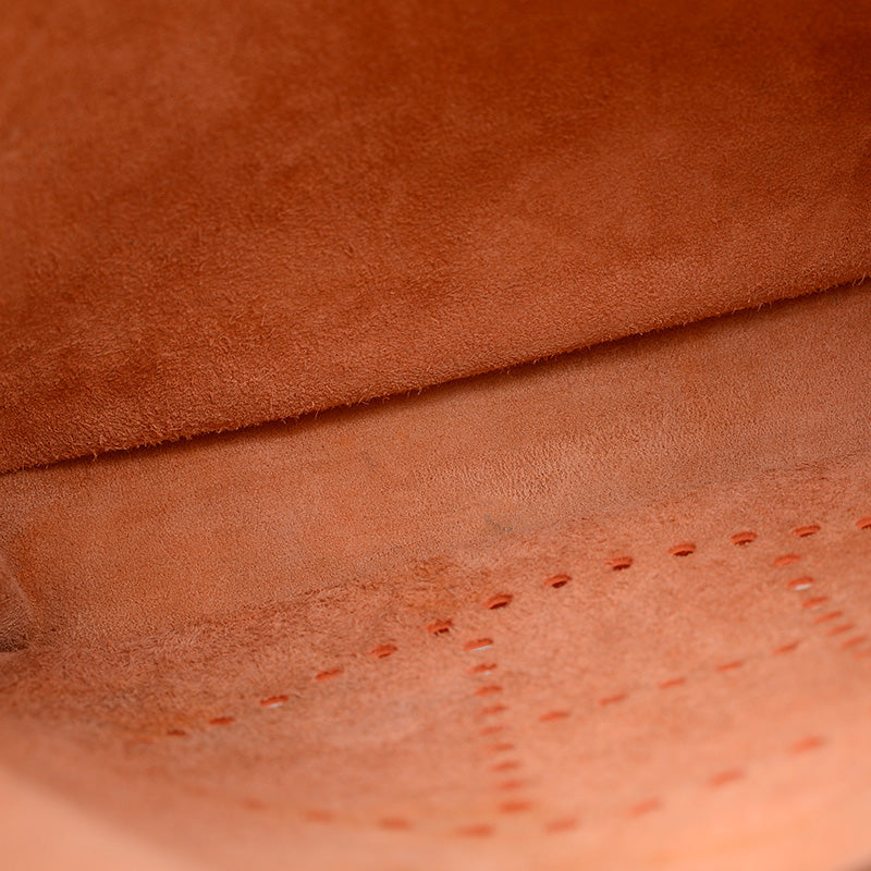 - その名の通り、パンチングされたHロゴが特徴的なショルダーバッグです。傷に強く型崩れしにくいヴォー・エプソン素材の鮮やかなオレンジカラーが目を引き、クールなシルバー金具が洗練されたアクセントになっています。日常使いから小旅行まで対応できる高い収納力と、斜め掛けも可能な実用性を兼ね備えた人気のアイテムです。