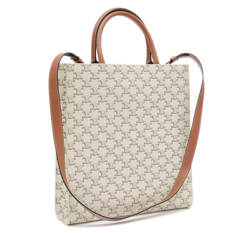 - ブランドを象徴するトリオンフ・キャンバスに、上質なレザーを組み合わせたトートバッグです。落ち着いたアイボリーとブラウンの配色が上品で、縦長フォルムと広めの開口部で収納力が抜群。取り外し可能なショルダーストラップ付きで、手持ちとしてもクロスボディとしても使え、日常からビジネスまで幅広く活躍する機能的で洗練された逸品です。
