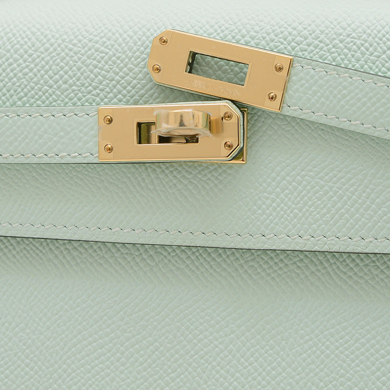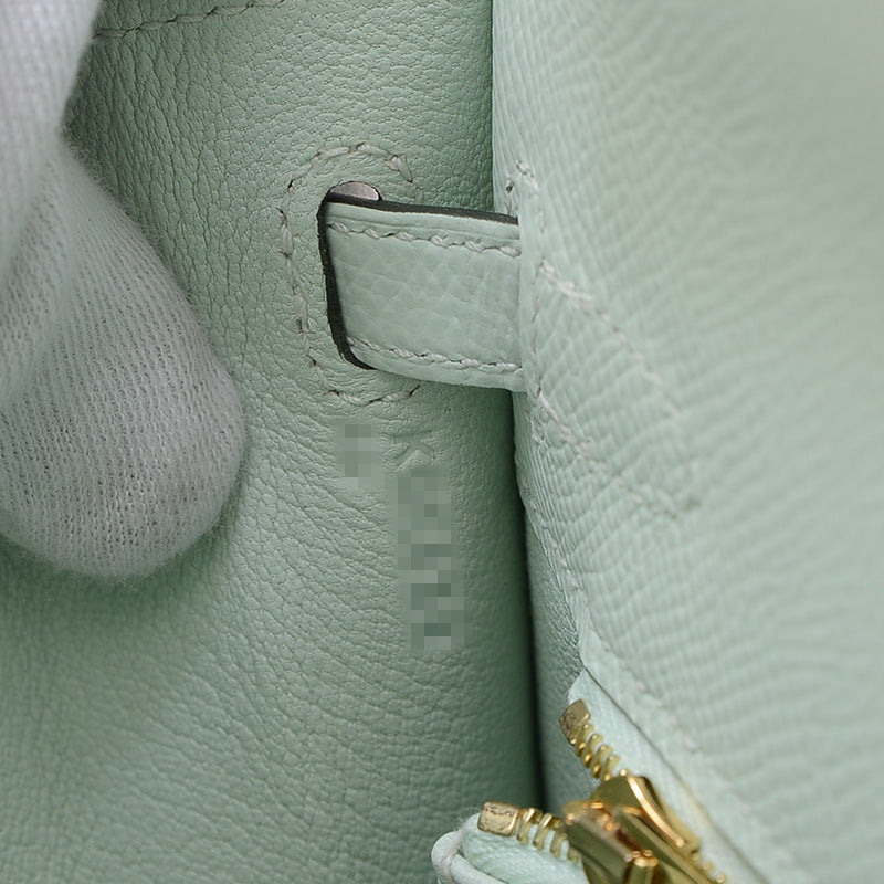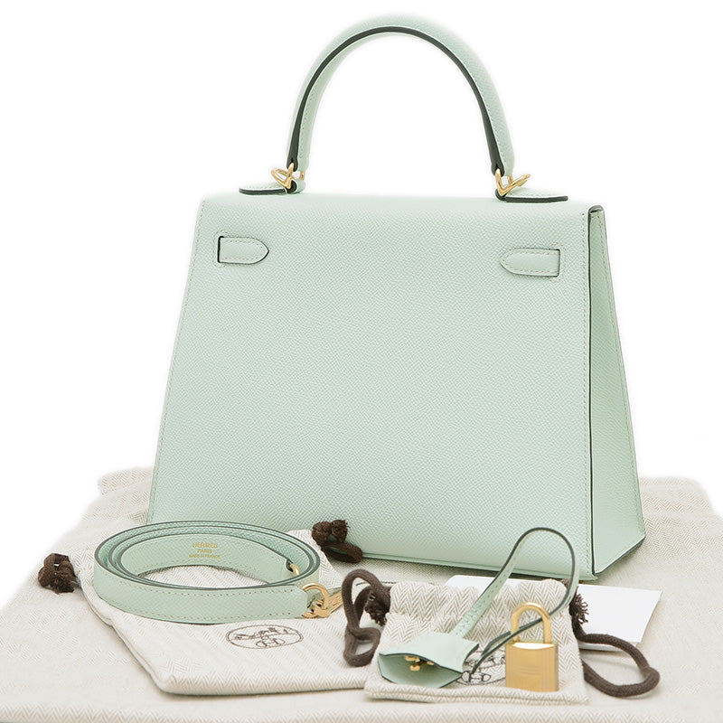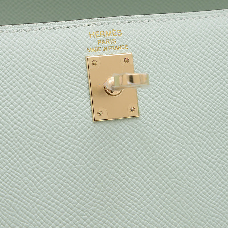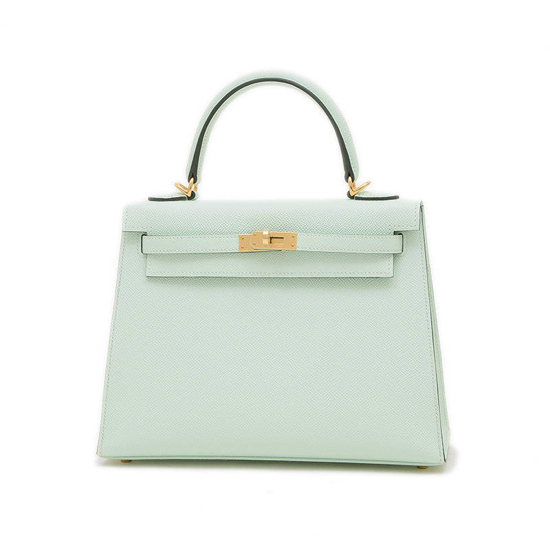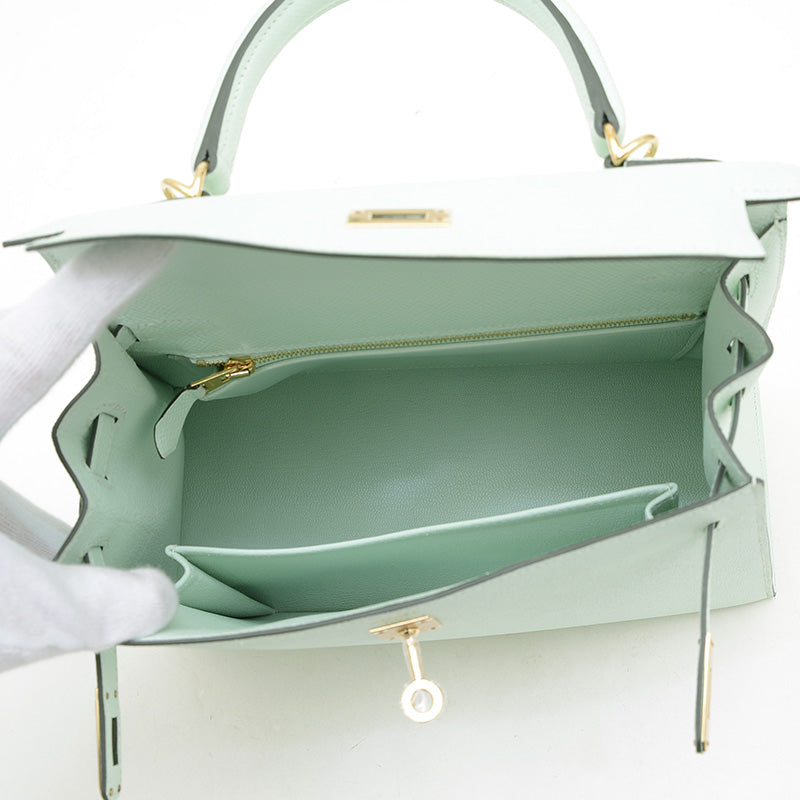 ケリー25 外縫い エプソン ペパーミント シャンパンゴールド金具 K刻印 ハンドバッグ