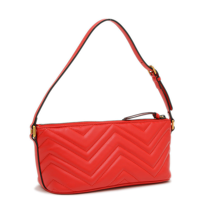 - その名の通り、アンティーク調のGGマーモントロゴが際立つショルダーバッグです。上質なキルティングレザーの鮮やかなレッドカラーが目を引くデザインで、コンパクトながらも日常の必需品をスマートに収納できます。チェーンストラップがエレガントなアクセントとなり、どんな装いも上品に格上げする人気の逸品です。