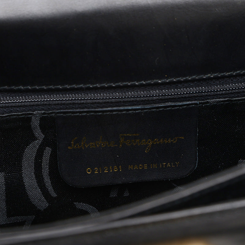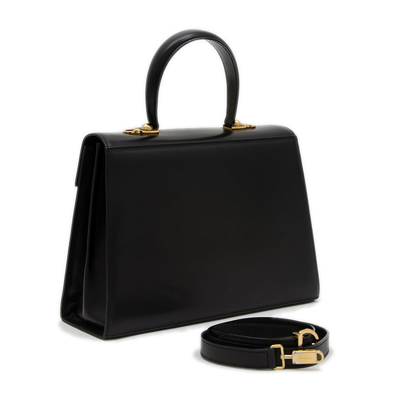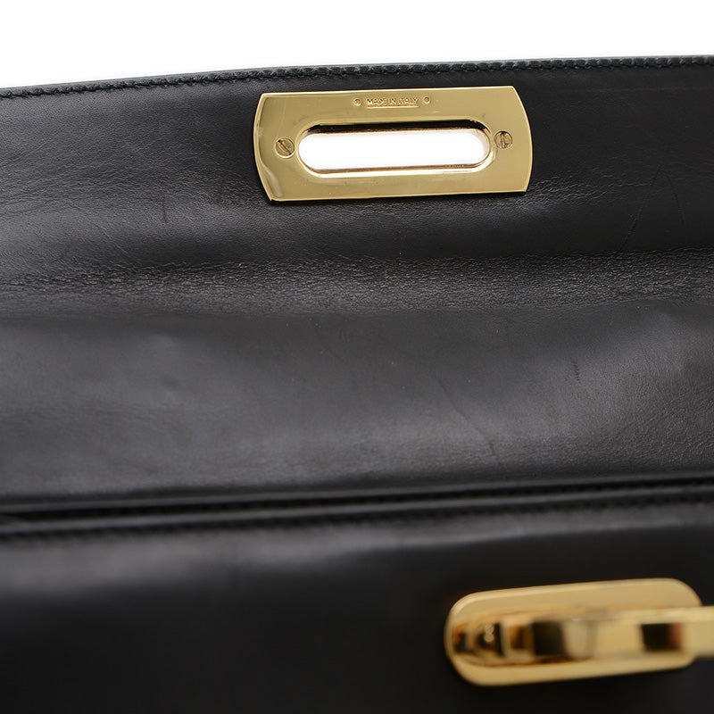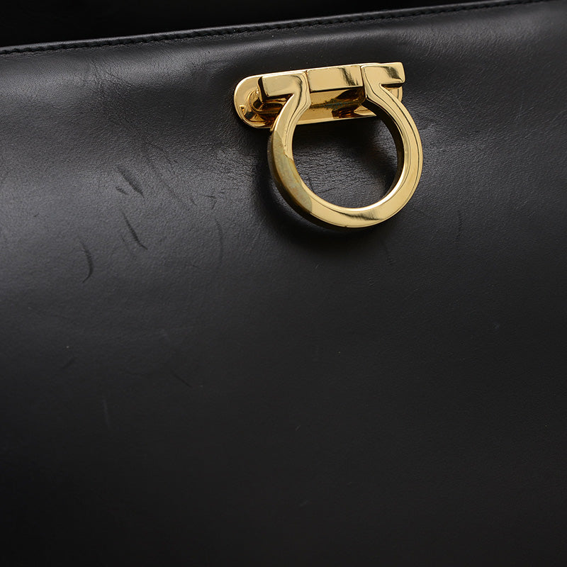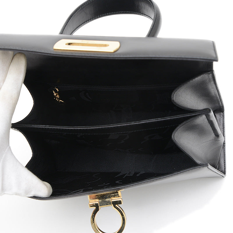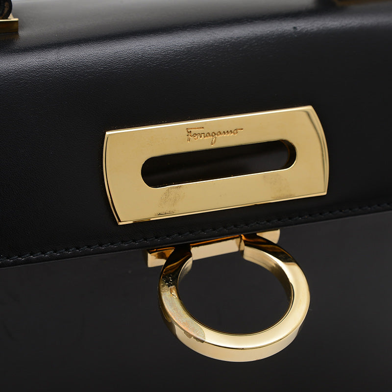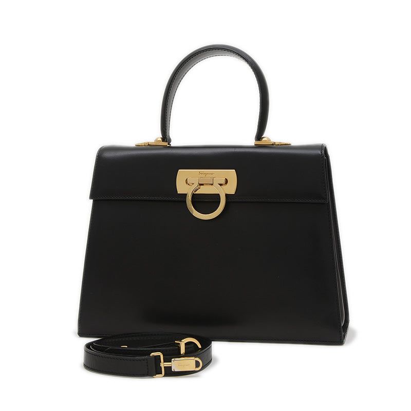ガンチーニ 2WAYバッグ ボックスカーフ ブラック ゴールド金具 ハンドバッグ