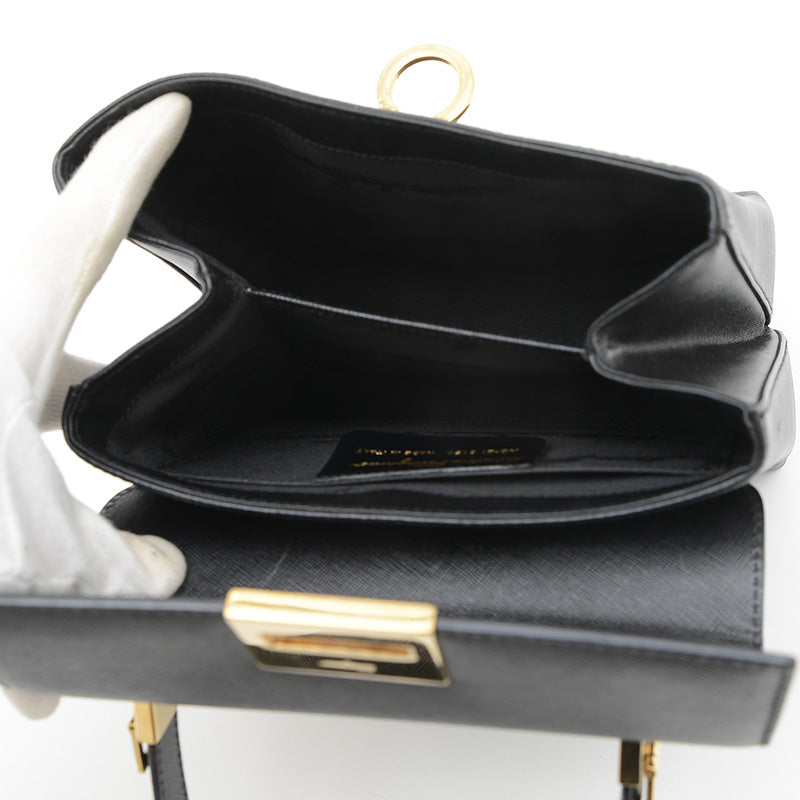 ガンチーニ 2WAY ショルダーバッグ ブラック レザー ゴールド金具 ハンドバッグ