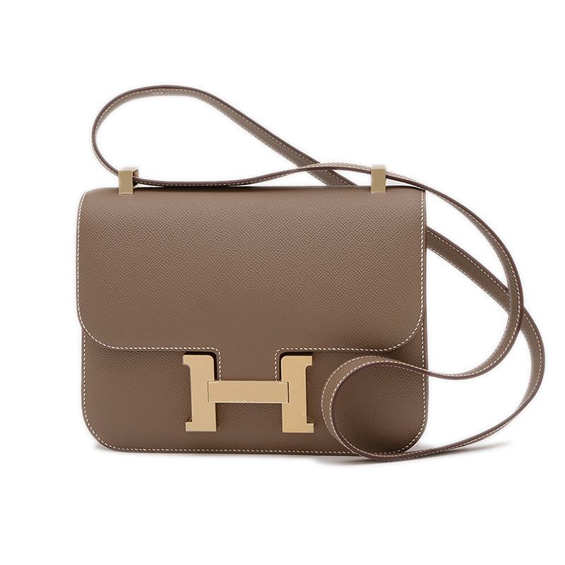 - アイコニックなHクラスプがミラー加工された、特別感のあるショルダーバッグです。傷に強く型崩れしにくいヴォー・エプソン素材の落ち着いたエトゥープカラーに、温かみのあるシャンパンゴールドのHクラスプが洗練されたラグジュアリー感を演出します。コンパクトながらも収納力があり、どんな装いも上品に格上げする、エルメスを代表するエレガントな逸品です。