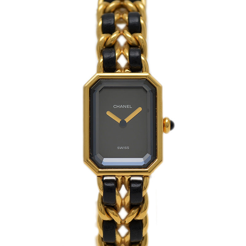 プルミエール レディース 黒文字盤 GP クォーツ H0001 Mサイズ 腕時計
