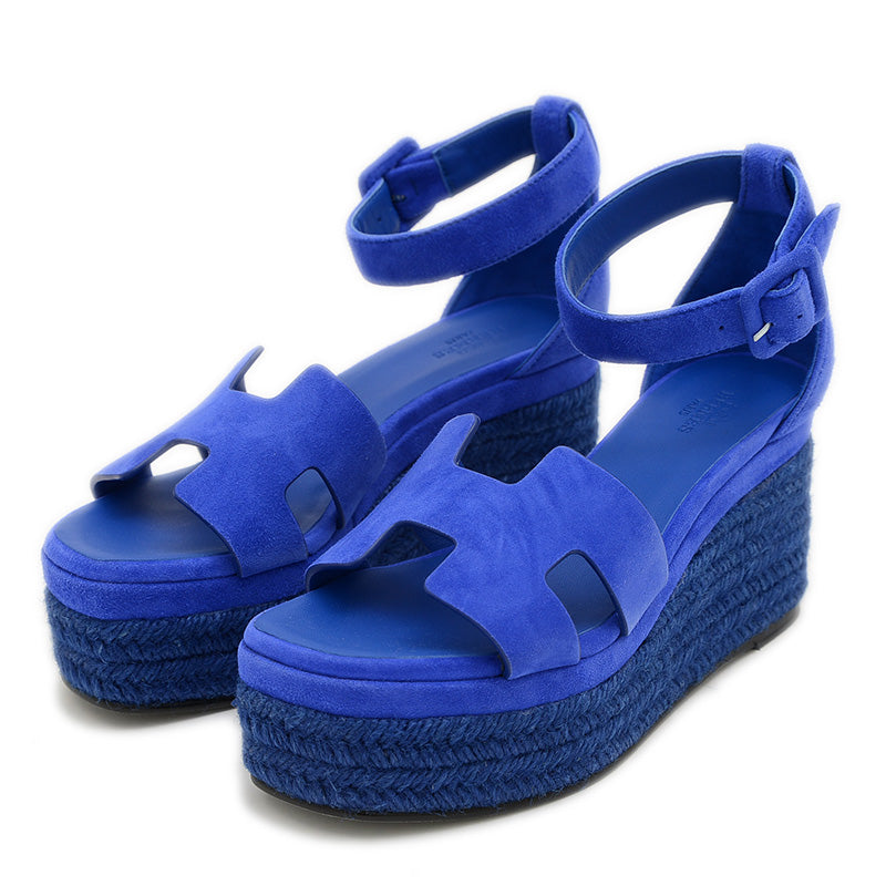 エルダ ウェッジソール サンダル スエード エスパドリーユ ブルー #35 サンダル