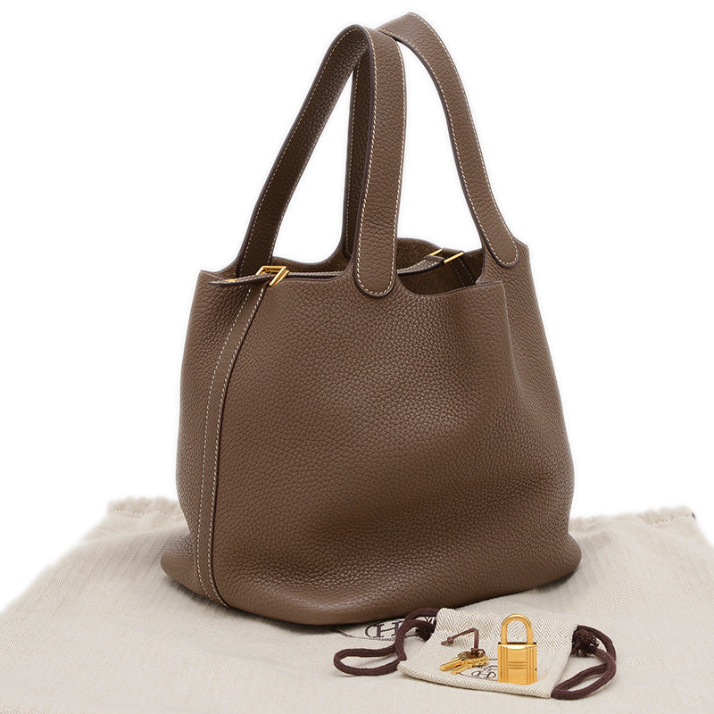 ピコタンロック MM 22 トリヨン エトゥープ ゴールド金具 C刻印 ハンドバッグ