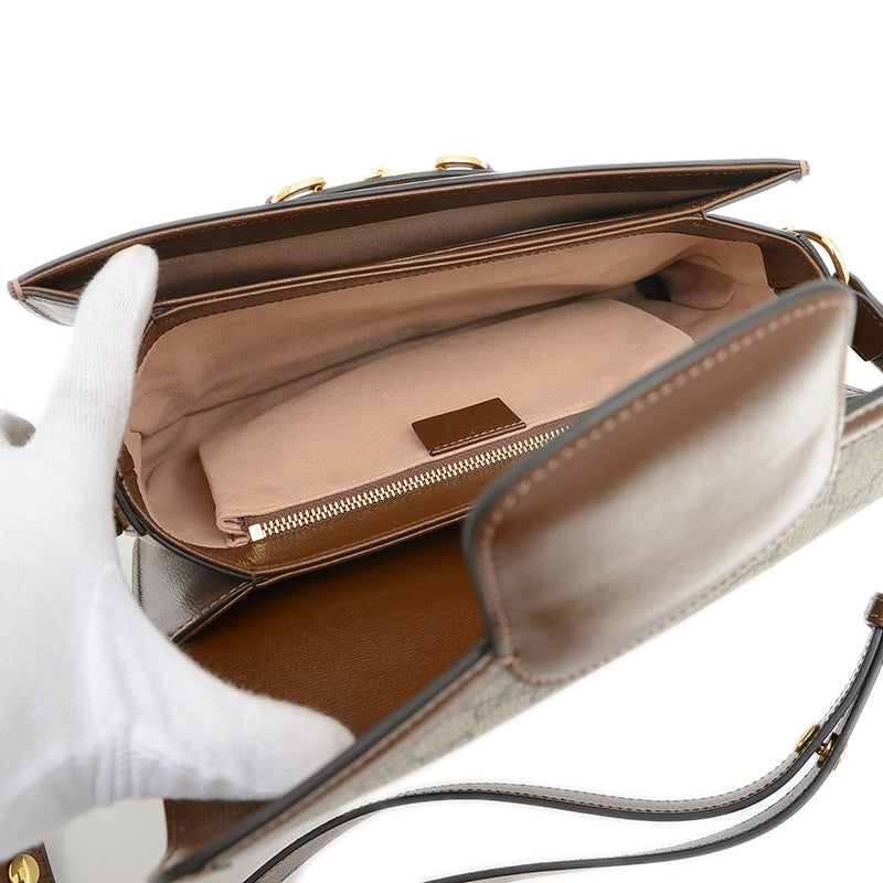 ブランドを象徴するホースビット金具とGGスプリームキャンバスが融合したクラシカルなバッグです。ベージュのキャンバス地にブラウンのレザーが組み合わされ、レトロでありながら洗練された印象を与えます。コンパクトながらも日常の必需品を収納でき、長さを調節できるストラップで肩掛けや斜め掛けも楽しめる、タイムレスな魅力を持つ人気の逸品です。