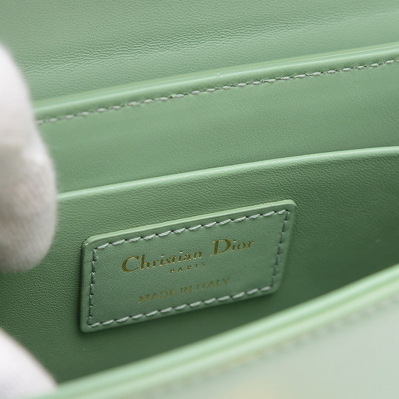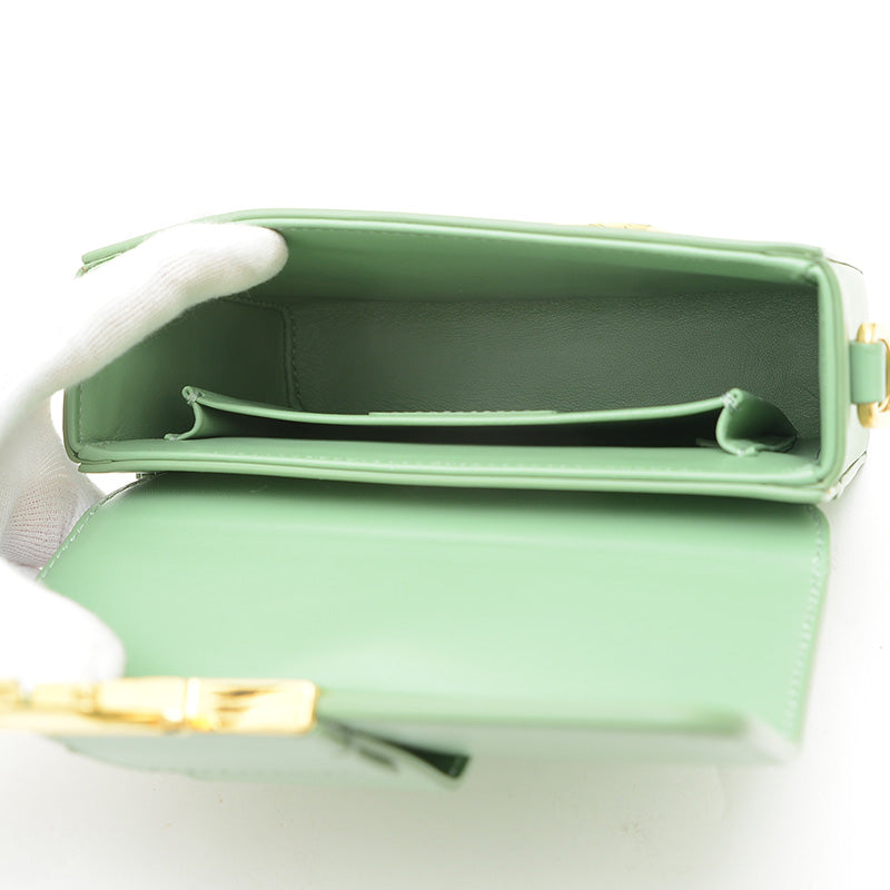 上質なレザーの爽やかなライトグリーンカラーが目を引くバッグです。フロントに配されたゴールドトーンのCDクラスプが洗練された印象を与え、かっちりとしたスクエアフォルムが特徴です。コンパクトながらも日常の必需品をスマートに収納でき、どんな装いも上品に格上げする、タイムレスな魅力を持つ人気の逸品です。