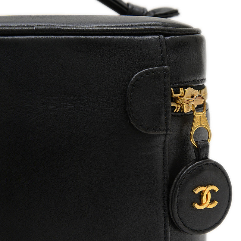 - 上質なレザーのシックなブラックカラーが特徴的なハンドバッグです。かっちりとしたバニティケース型に、エレガントなゴールドの金具が組み合わされ、ココマークの留め具が上品なアクセントになっています。コスメポーチとしてだけでなく、ハンドバッグとしても使えるデザインが、日常に洗練された魅力を添える人気の逸品です。