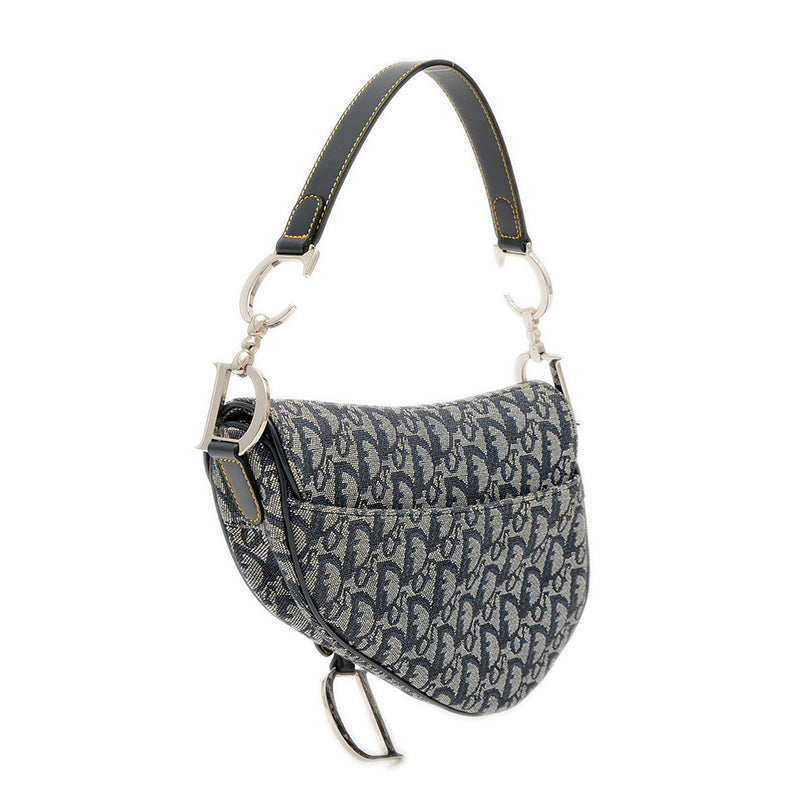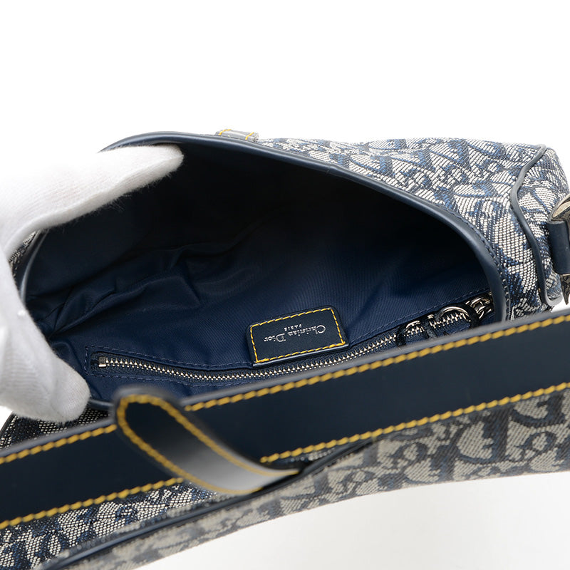 サドルバッグ トロッター ショルダーバッグ キャンバス/レザー ネイビー ハンドバッグ