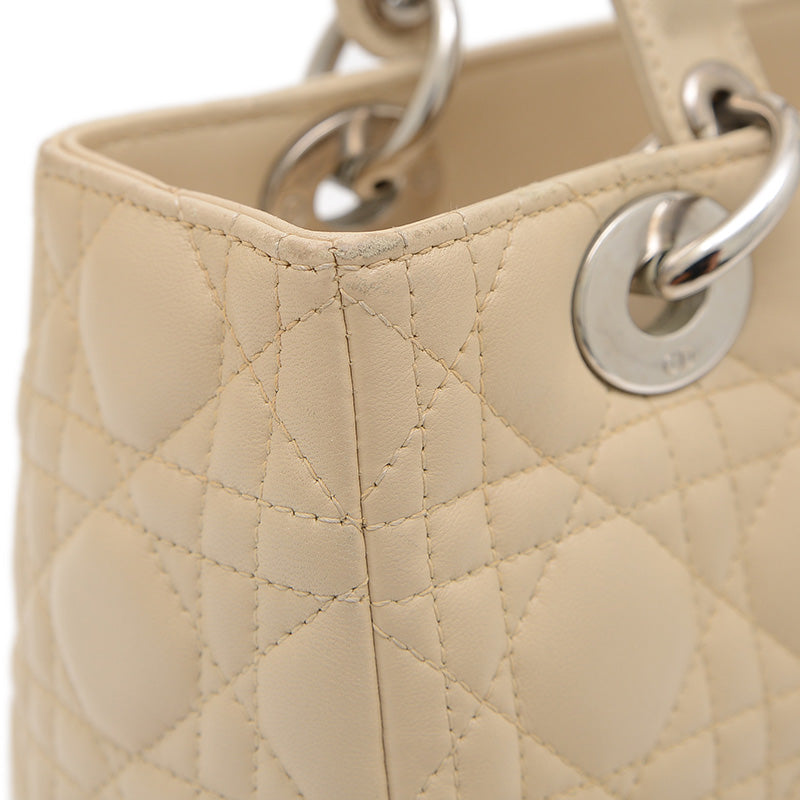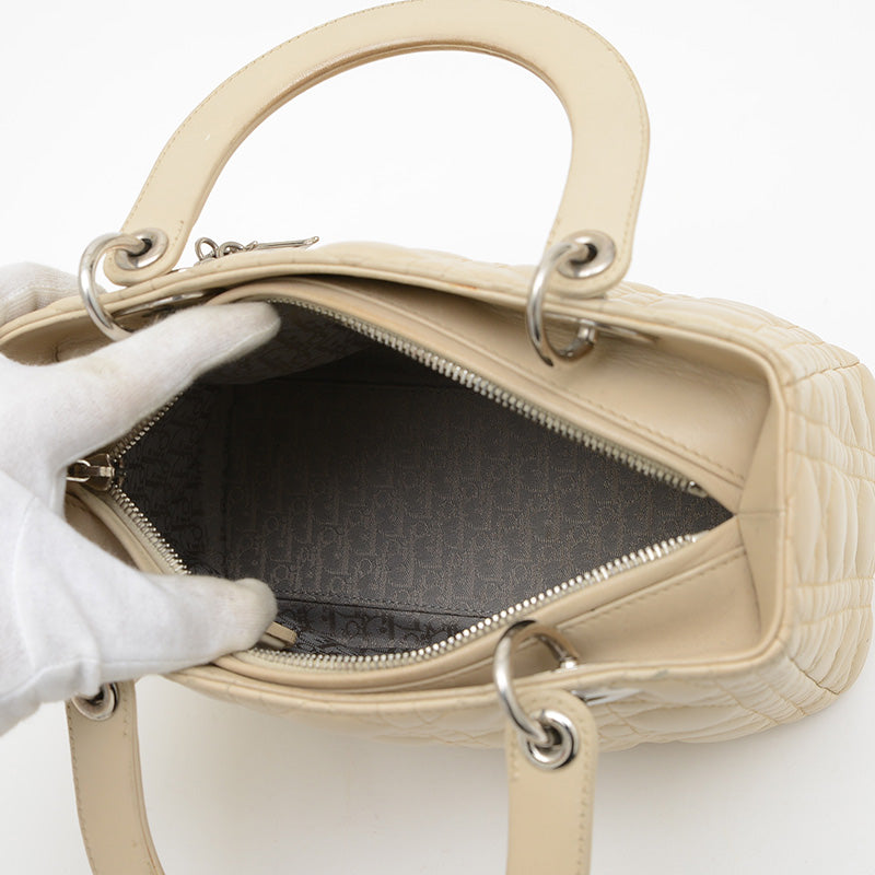 レディディオール カナージュ ミディアム 2WAYバッグ ラムスキン ベージュ ハンドバッグ