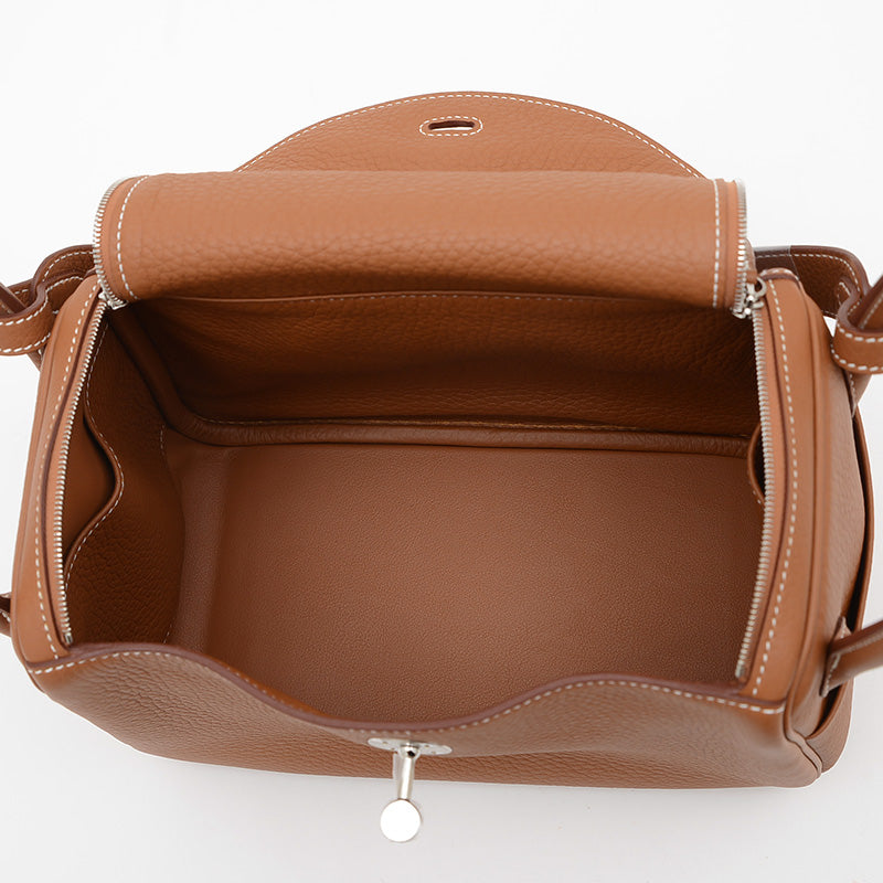 その名の通り両サイドに開くユニークなファスナー開閉が特徴のハンドバッグです。しなやかで人気の高いトリヨンクレマンス素材の温かみのあるゴールドカラーに、クールなシルバー金具が洗練されたアクセントになっています。日常使いに最適なサイズ感ながら、リンディならではのモダンで洗練されたフォルムがどんなスタイルにも上品さを添える、人気の高い逸品です。