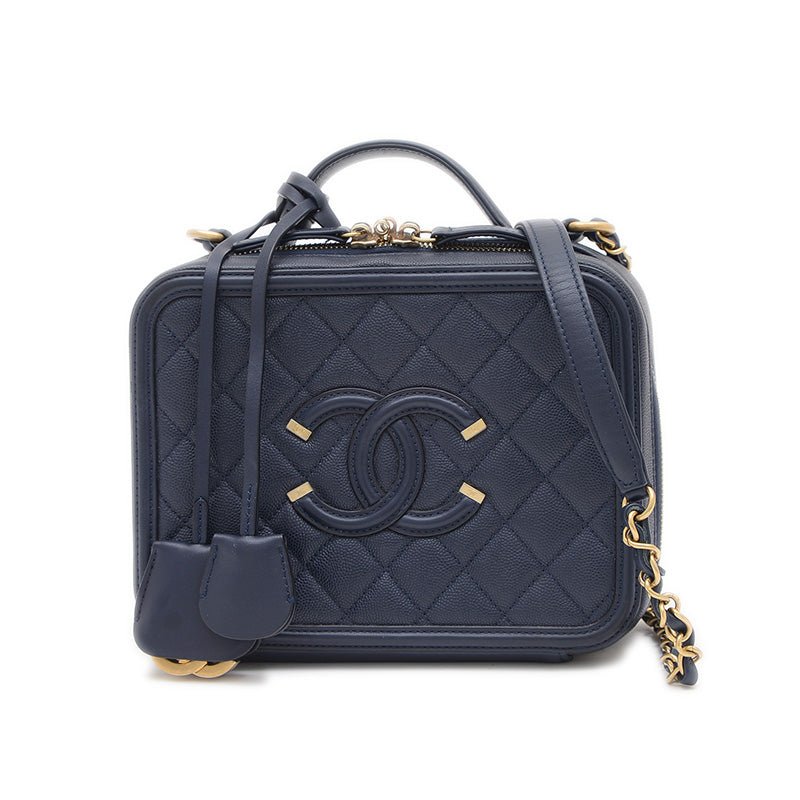 CCフィリグリー チェーンショルダー キャビアスキン ネイビー A93344 ショルダーバッグ