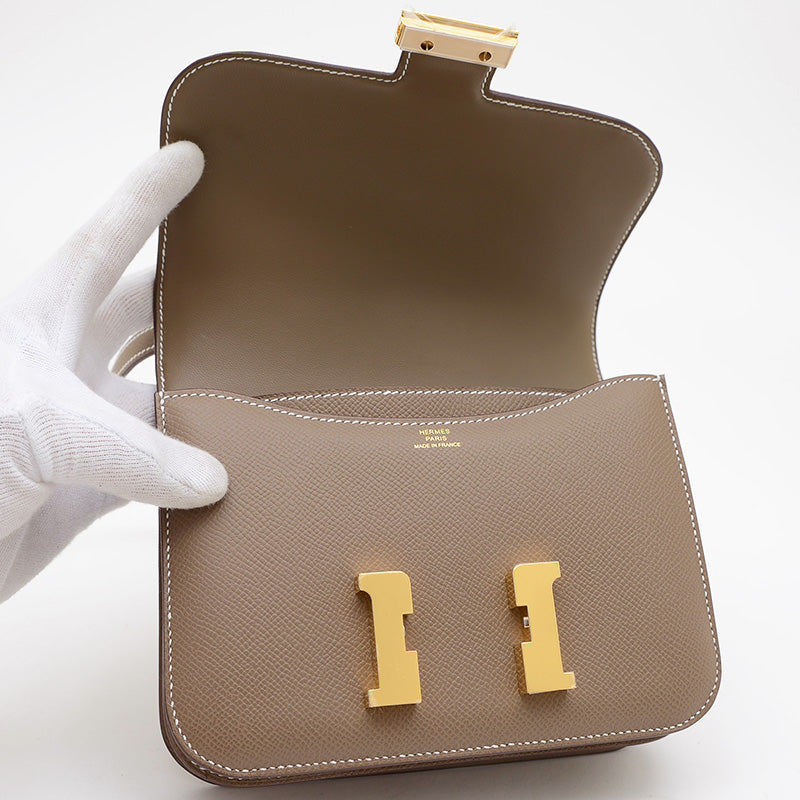 - アイコニックなHクラスプが特徴的な、エレガントなショルダーバッグです。かっちりとしたスクエアフォルムと、機能的な内装が洗練された印象を与えます。どんな装いも上品に格上げするタイムレスな魅力を持ち、エルメスを代表するアイコンバッグの一つとして広く愛されています。