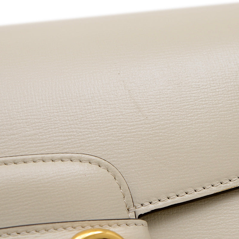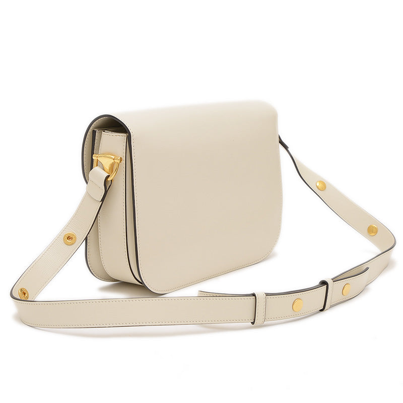 - 上質なレザーのクリーンなアイボリーカラーが特徴的なバッグです。ブランドの象徴であるホースビット金具がフロントに輝き、クラシックなフォルムが洗練された印象を与えます。コンパクトながらも日常の必需品をスマートに収納でき、調節可能なストラップで肩掛けや斜め掛けも楽しめる、タイムレスな魅力を持つ人気の逸品です。