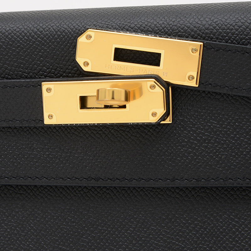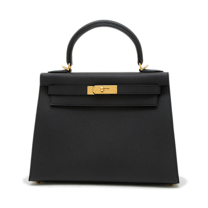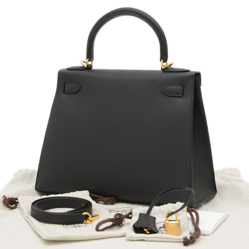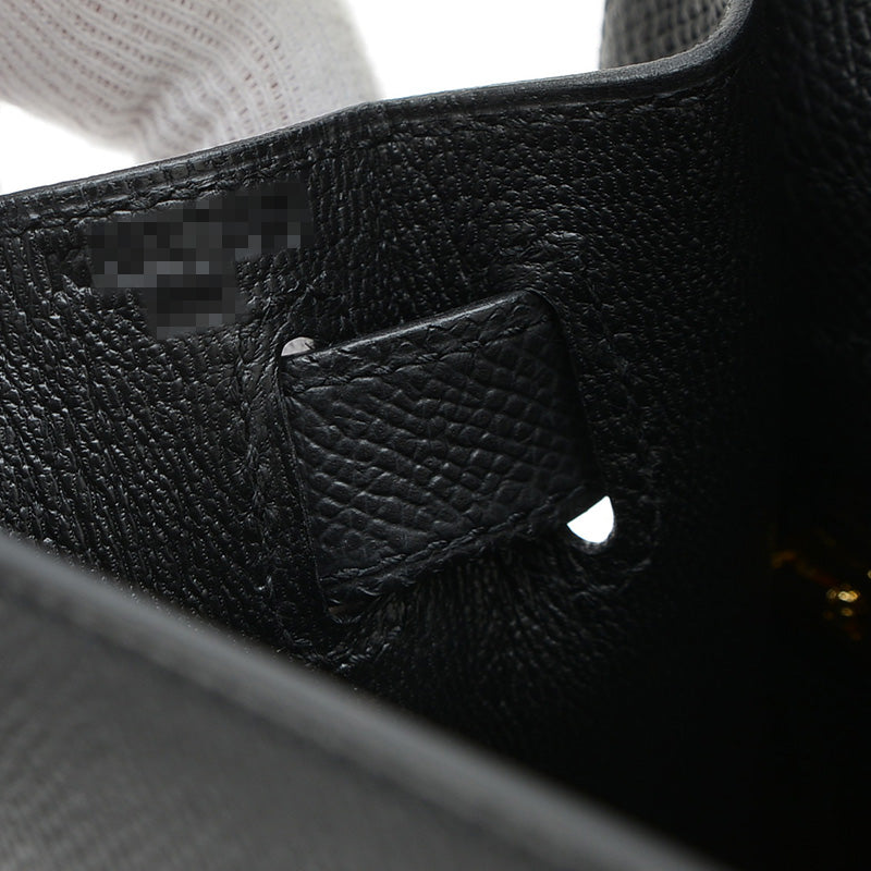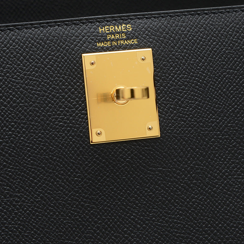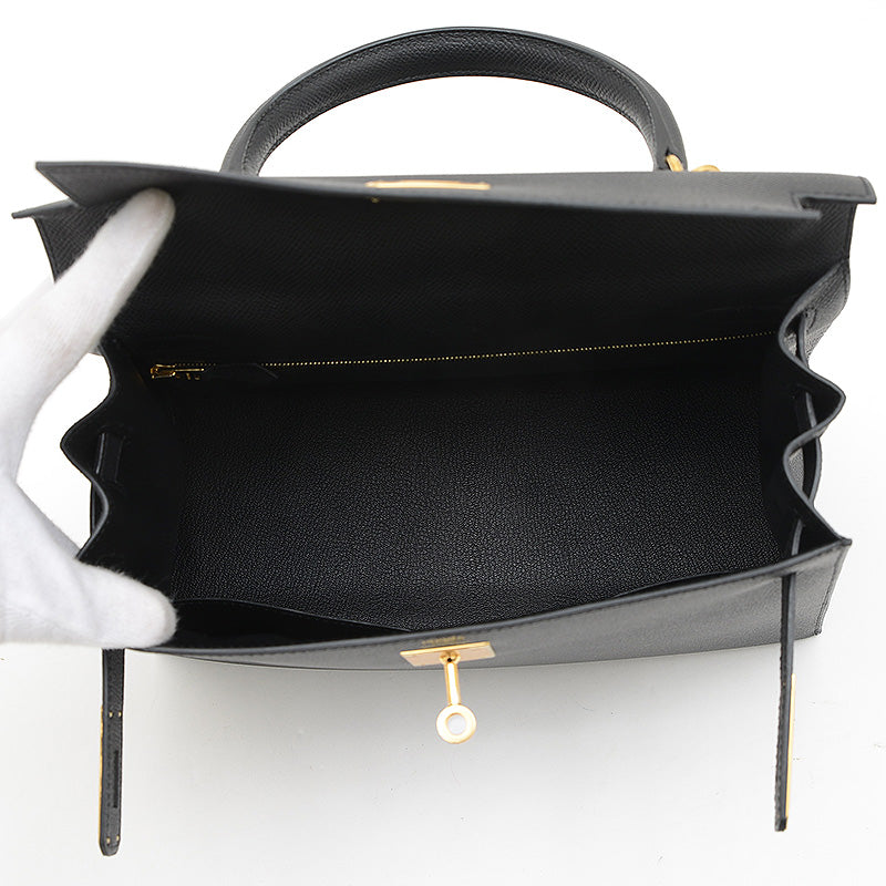 ケリー28 外縫い エプソン ブラック ゴールド金具 K刻印 ハンドバッグ