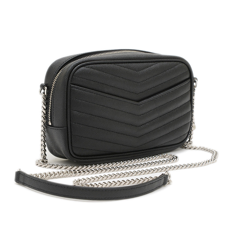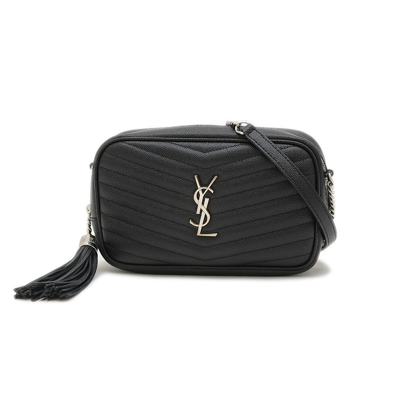 - 上質なキルティングレザーのブラックに、ブランドを象徴するYSLカサンドラロゴが輝くショルダーバッグです。コンパクトなスクエアフォルムと、取り外し可能なタッセルチャームが特徴。チェーンストラップがエレガントなアクセントとなり、どんな装いも上品に格上げする人気の逸品です。