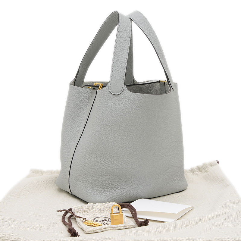 ピコタンロックMM 22 トリヨン ブルーグラシエ ゴールド金具 W刻印 ハンドバッグ