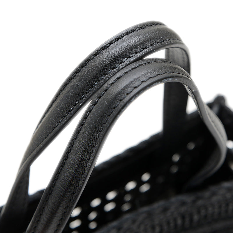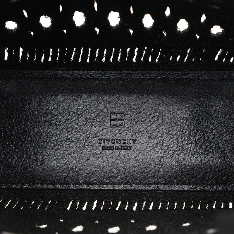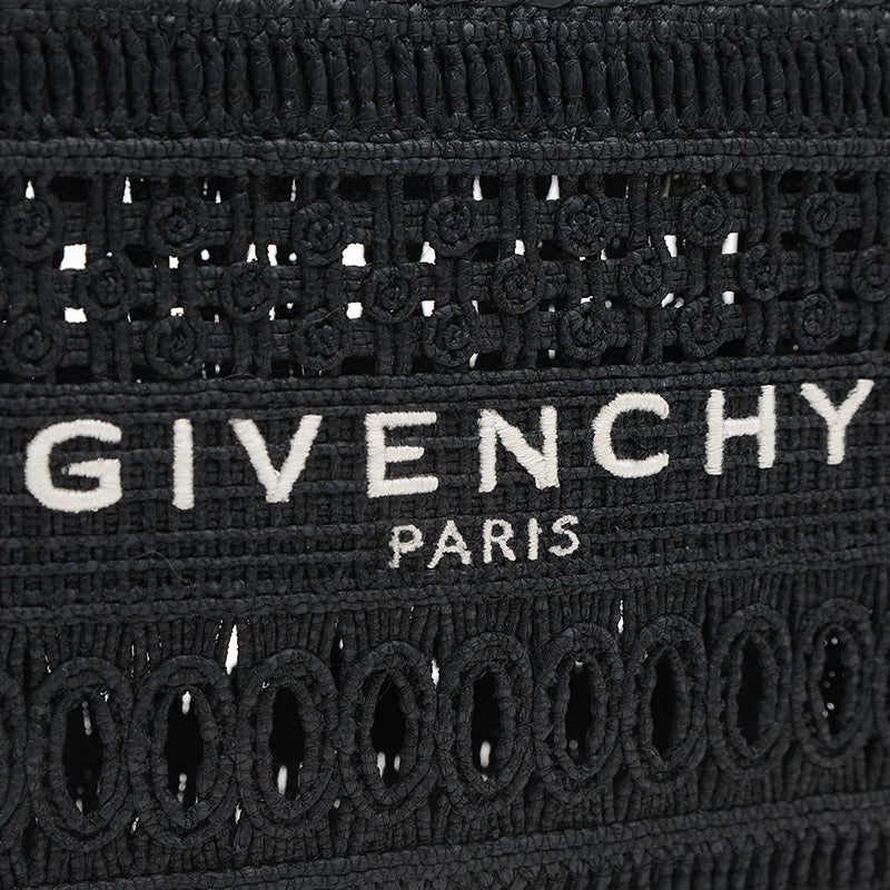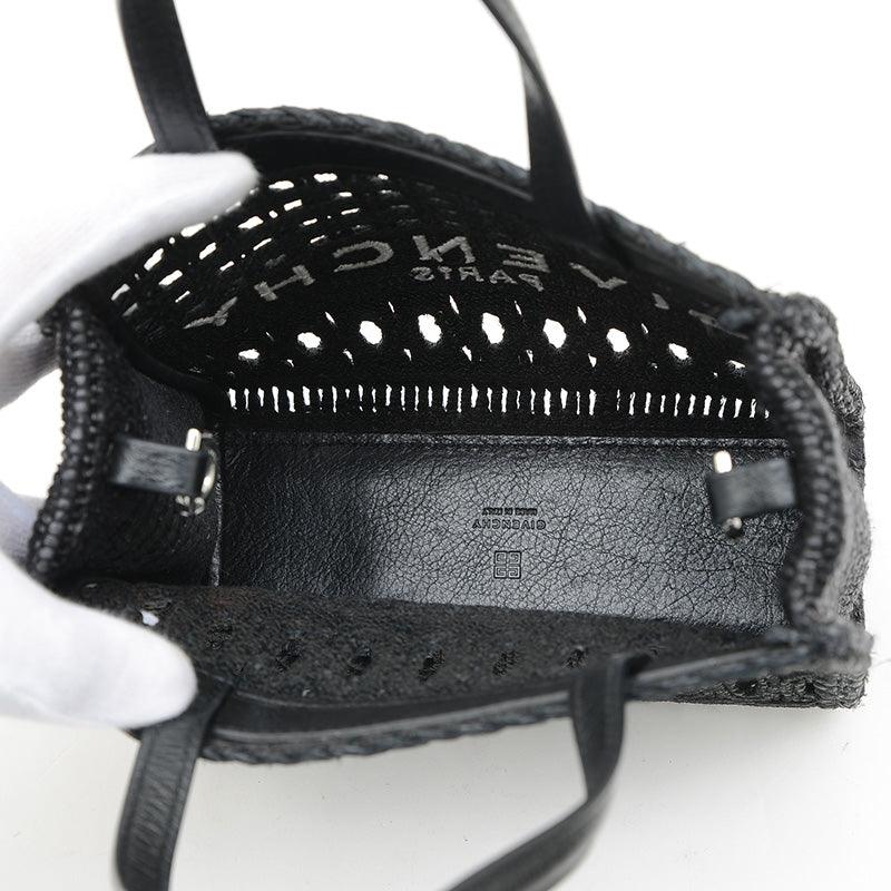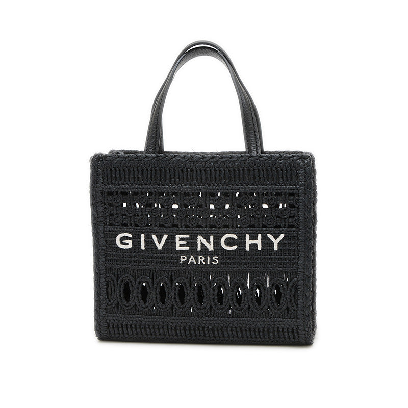 - ビスコースなどの混合素材で仕立てられたシックなブラックカラーのミニトートバッグです。フロントにGIVENCHY PARISのロゴが配されたモダンなデザインが特徴で、コンパクトながらも日常の必需品をスマートに収納できます。取り外し可能なショルダーストラップ付きで、手持ちとしてもクロスボディとしても楽しめる、機能的かつエレガントな逸品です。