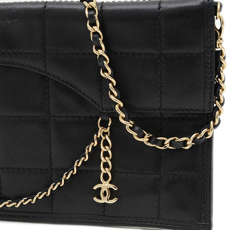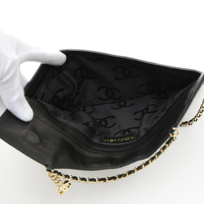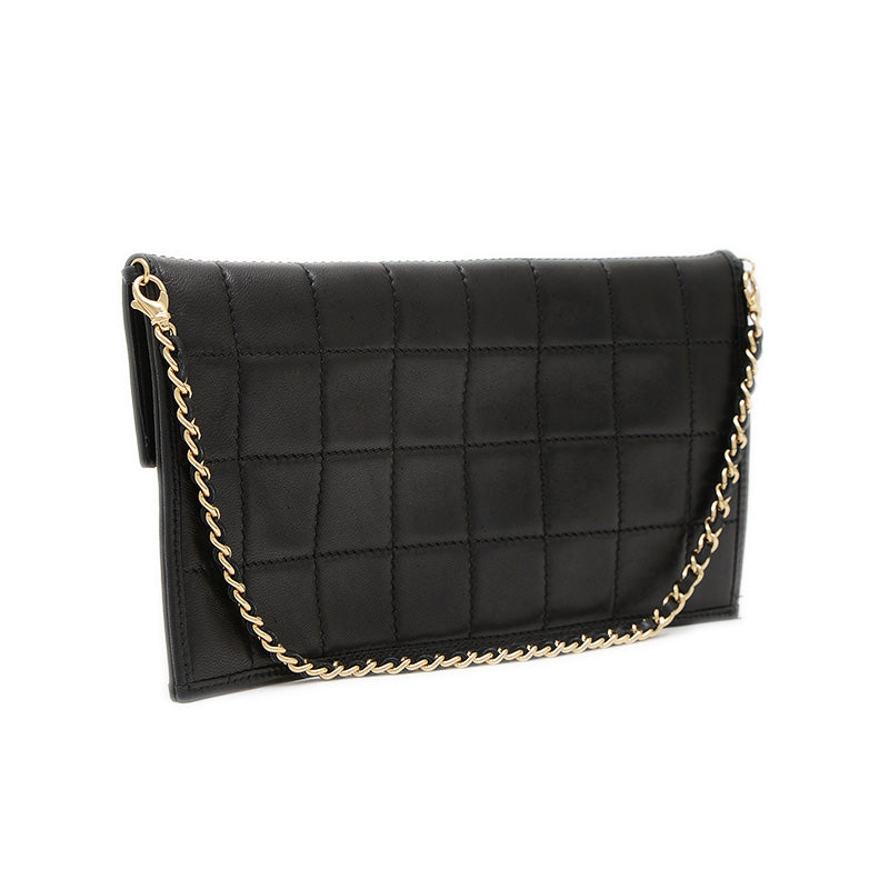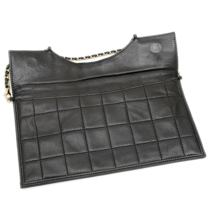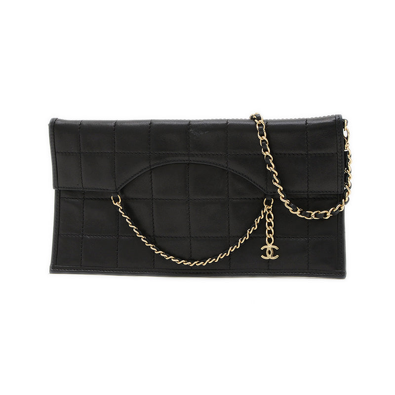 チョコバー チェーンショルダー ラムスキン ブラック ゴールド金具 ショルダーバッグ