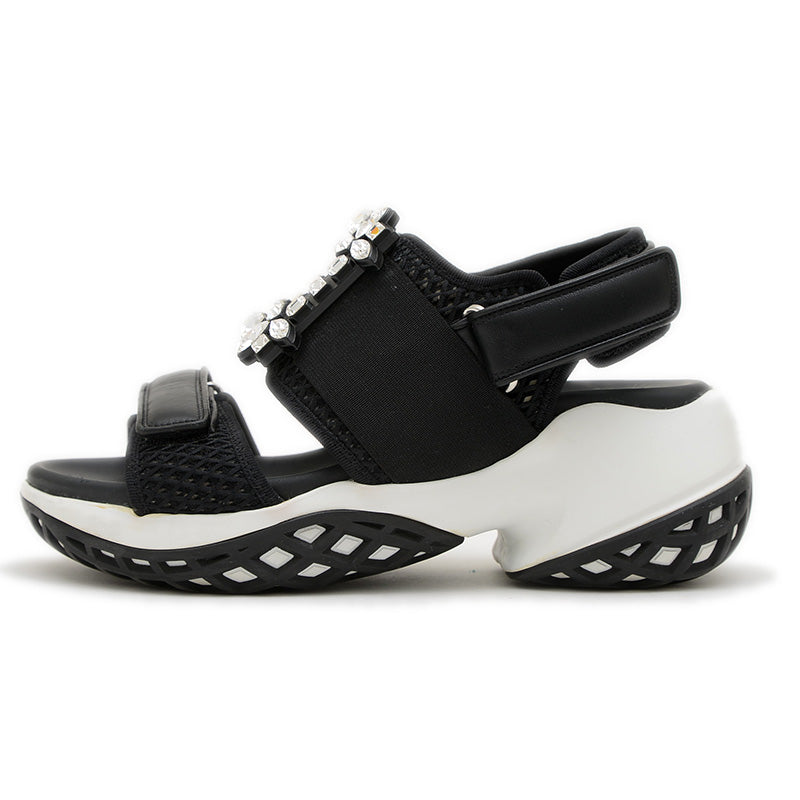 - 上質なレザーとナイロン素材のシックなブラックカラーが特徴のスポーティなサンダルです。特徴的な厚底ソールと、足をしっかりとホールドする太めのストラップが組み合わされており、抜群の歩きやすさと快適な履き心地を提供します。カジュアルなアイテムながらもロジェ・ヴィヴィエらしい洗練されたエレガンスを兼ね備えた人気の逸品です。
