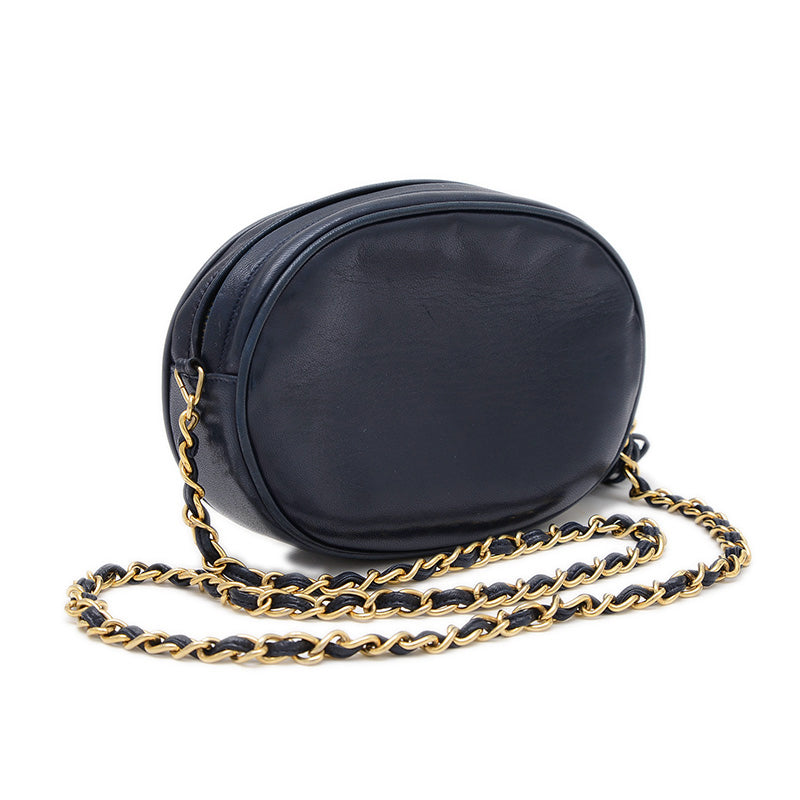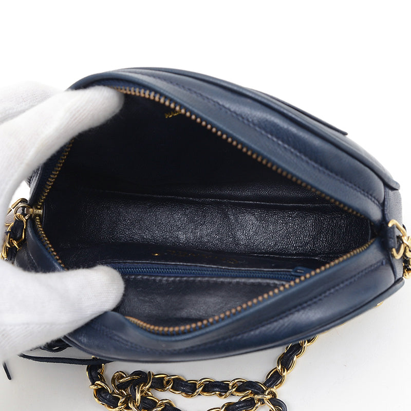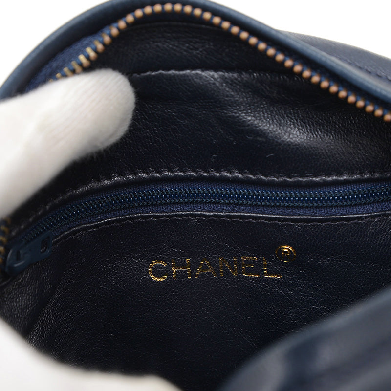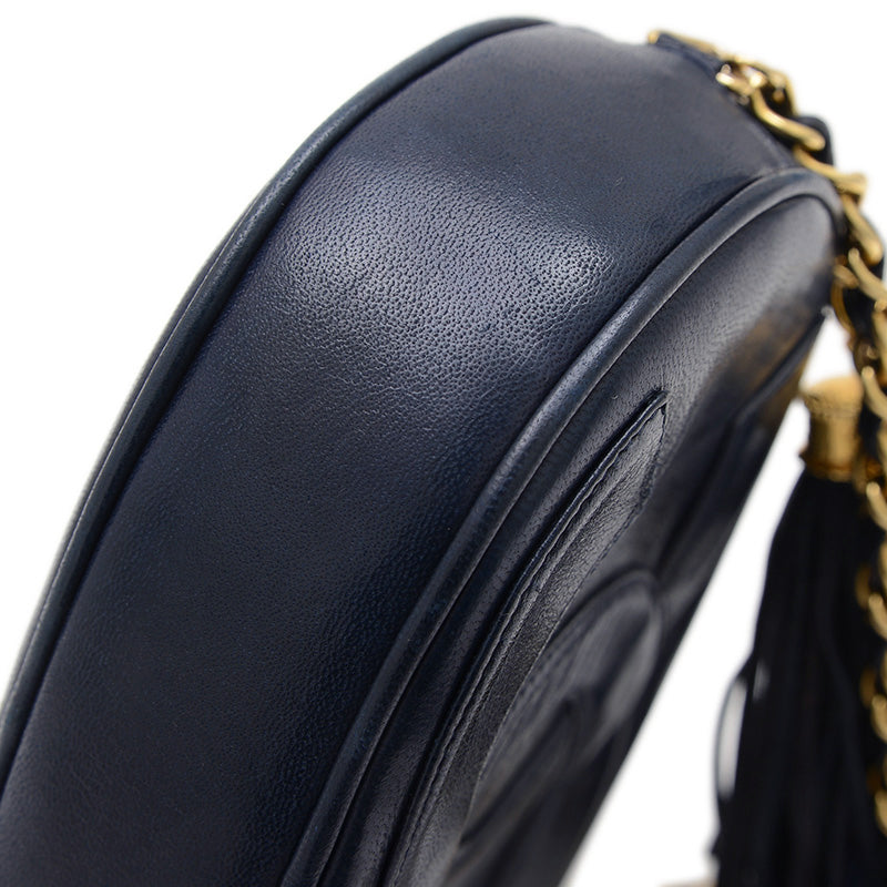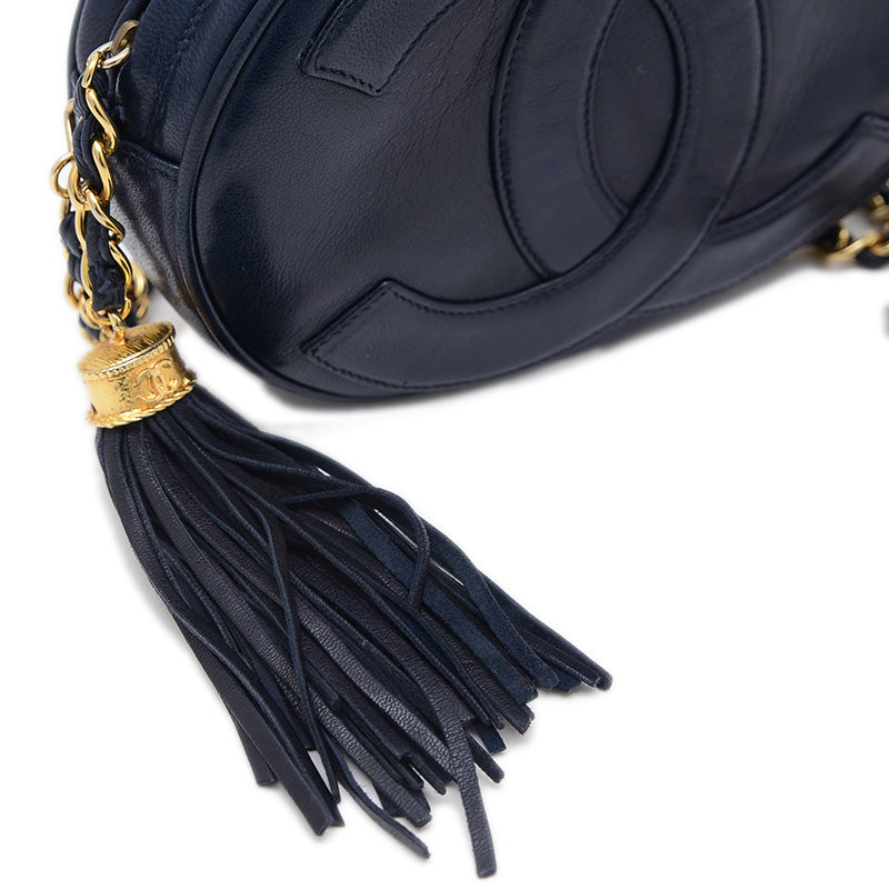 ココマーク フリンジ チェーンショルダーバッグ ネイビー ラムスキン ゴールド金具 ショルダーバッグ