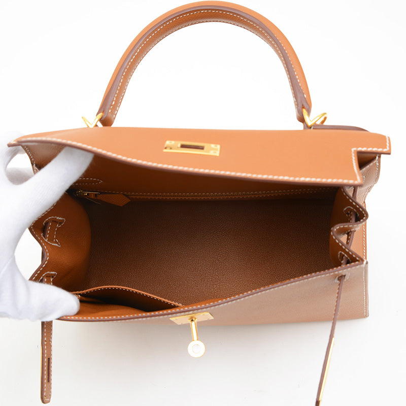 ケリー28 外縫い エプソン ゴールド ゴールド金具 K刻印 ハンドバッグ