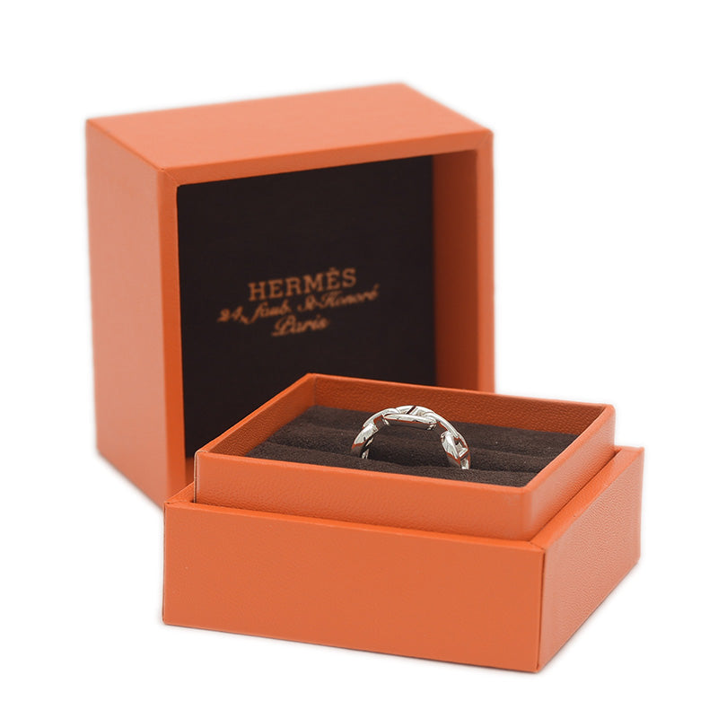 - ブランドを象徴する錨の鎖「シェーヌダンクル」モチーフを、繊細なPMサイズで表現したリングです。上質なシルバー925素材が洗練された輝きを放ち、ミニマルながらもエルメスらしい存在感を放ちます。日常使いに最適な着け心地で、どんなスタイルにも上品なアクセントを添える、タイムレスな魅力を持つ逸品です。