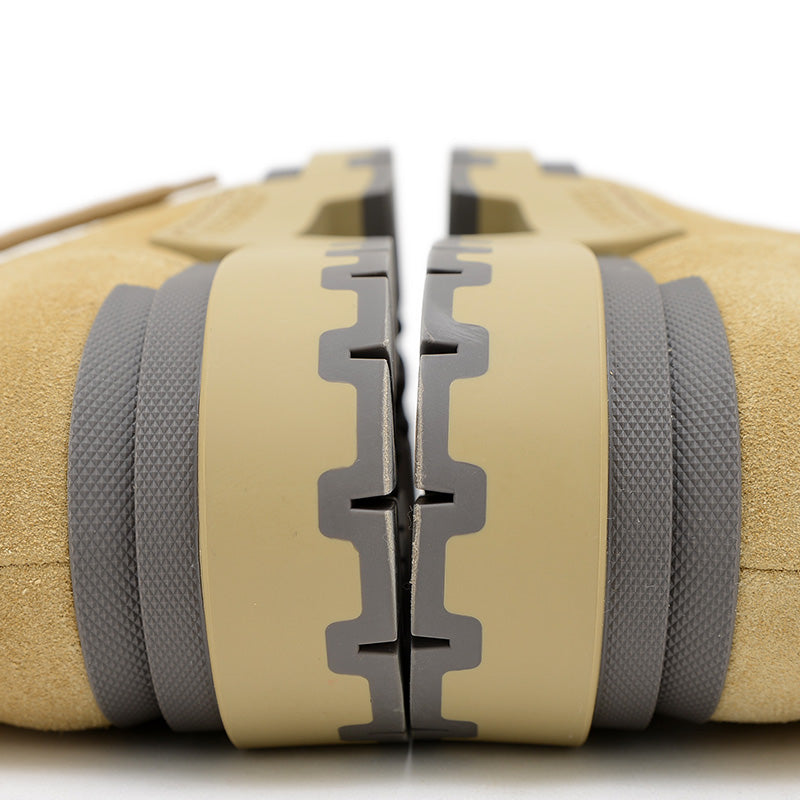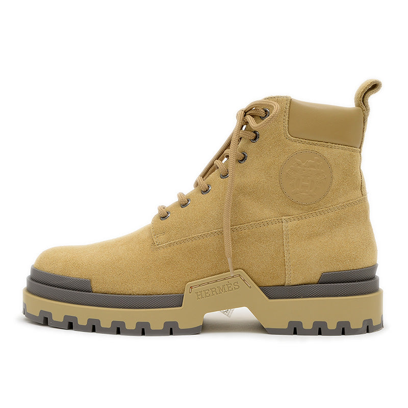 - 柔らかなヴォー・ヴェロア(スエード)と上質なカーフスキンを組み合わせた、異素材のコントラストが特徴のブーツです。ベージュ・アルバートルという上品な淡いベージュカラーが洗練された印象を与え、サイドにあしらわれたケリーバックルがエレガントなアクセントになっています。安定感のあるチャンキーヒールと、足首を美しく見せるデザインが、どんな装いも上品に格上げする人気の逸品です。